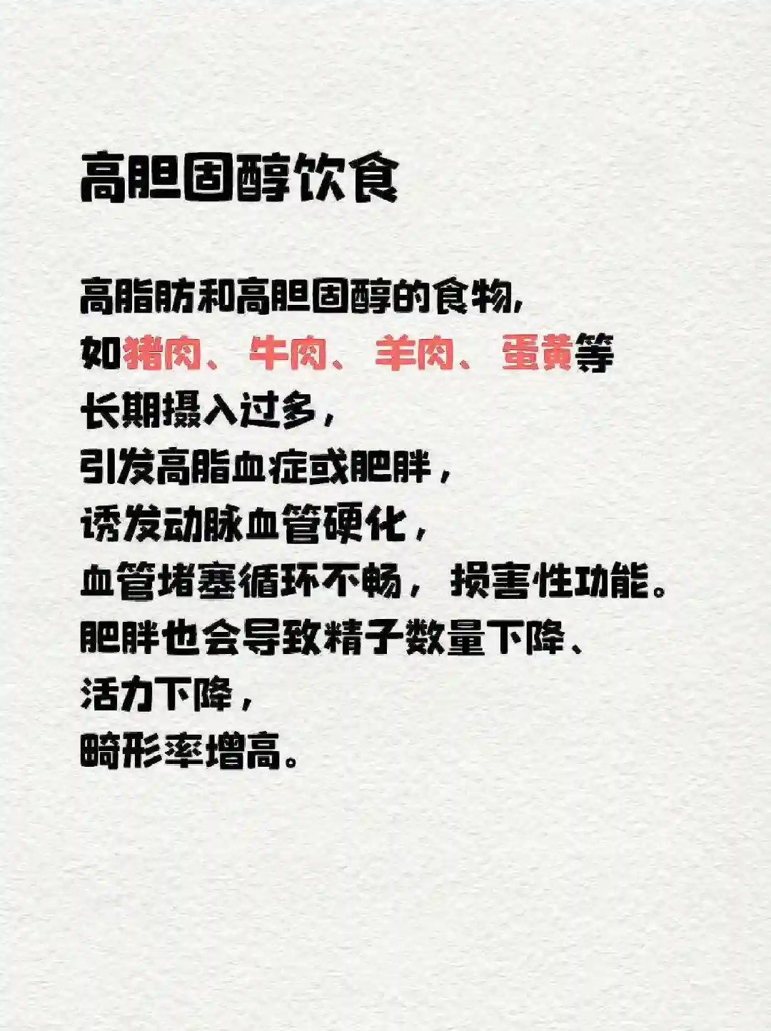 高脂肪和高胆固醇的食物,如猪肉、牛肉、羊肉、蛋黄等