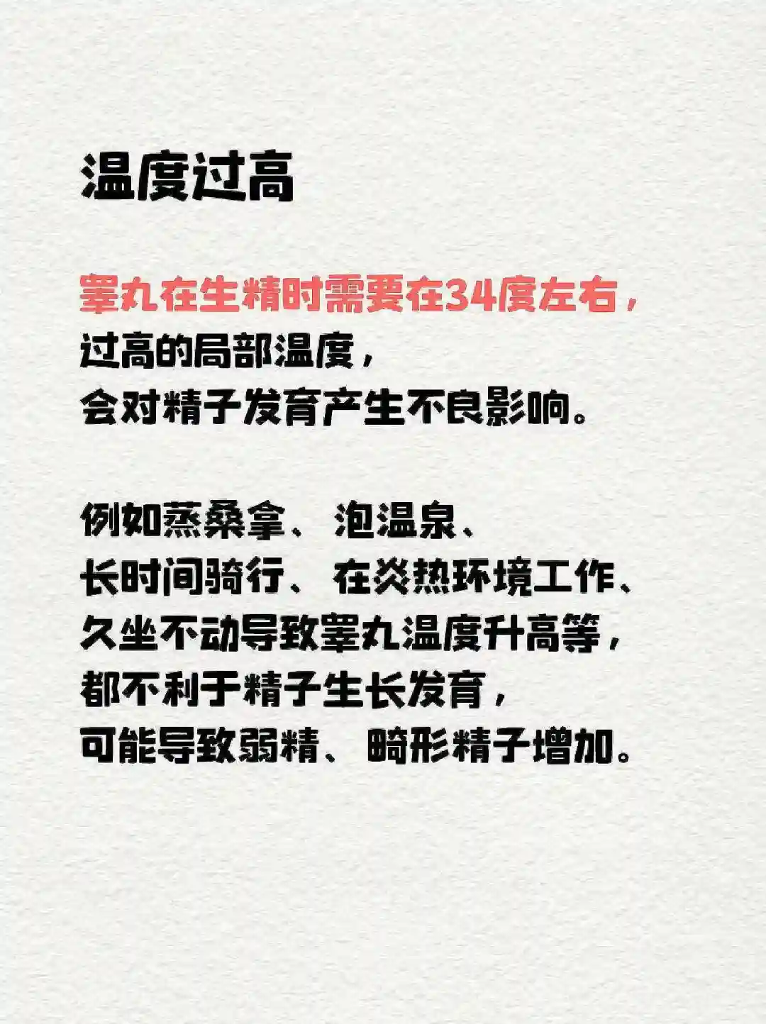 久坐不动导致睾丸温度升高等,都不利于精子生长发育,
