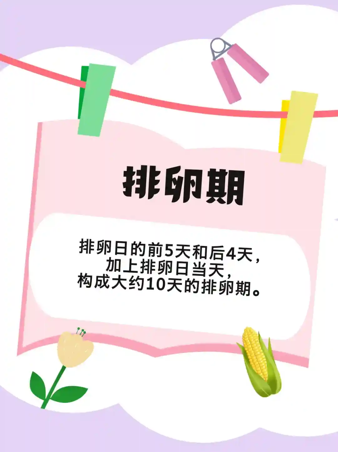 排卵期:排卵日的前五天和后四天,加上排卵日当天,构成大约10天的排卵期。