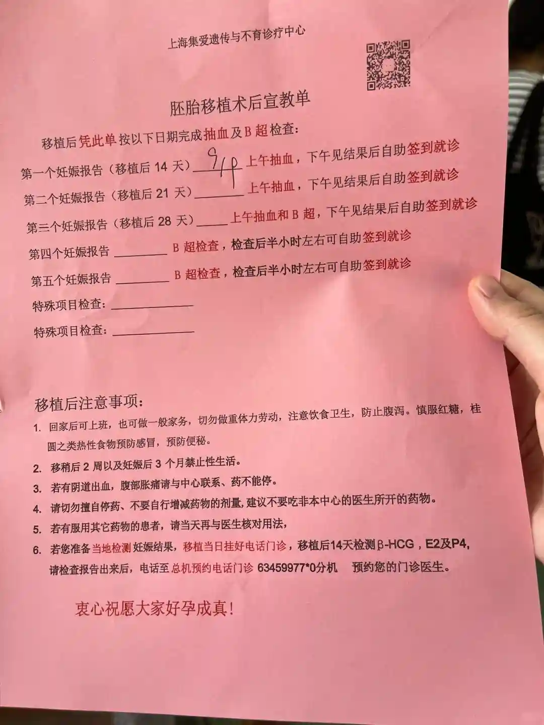 偶尔选择性迷信一下玄学就当是让自己放松一点余医生移植的时候说你的宝宝来啦真的开心到爆炸 哈哈哈哈哈哈另外一个护士移完后指着屏幕上的白色点点和我说它就在那,那一刻觉得好神奇它会跟随着我一起慢慢成长#移植憋尿 也还挺幸运移完床上躺了一会就去wc了离开集爱前又去找余医生确认了一遍移植后用药,晚上回来就把明早才要塞的#黄体酮栓 塞了,群里问了医生说没关系 哈哈哈单纯没经历过紧张了今天狗子上扶梯的时候都走到下扶梯的一边了,还是被我抓回来的 哈哈哈哈