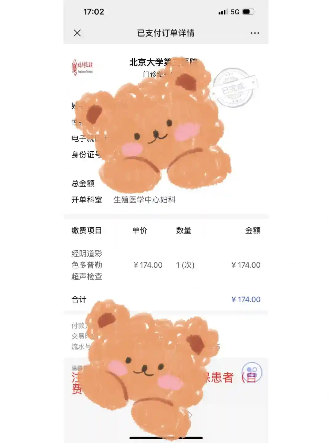 这次的彩超是在生殖中心彩超室做的,不是在诊室做的那种,需要提前排尿。