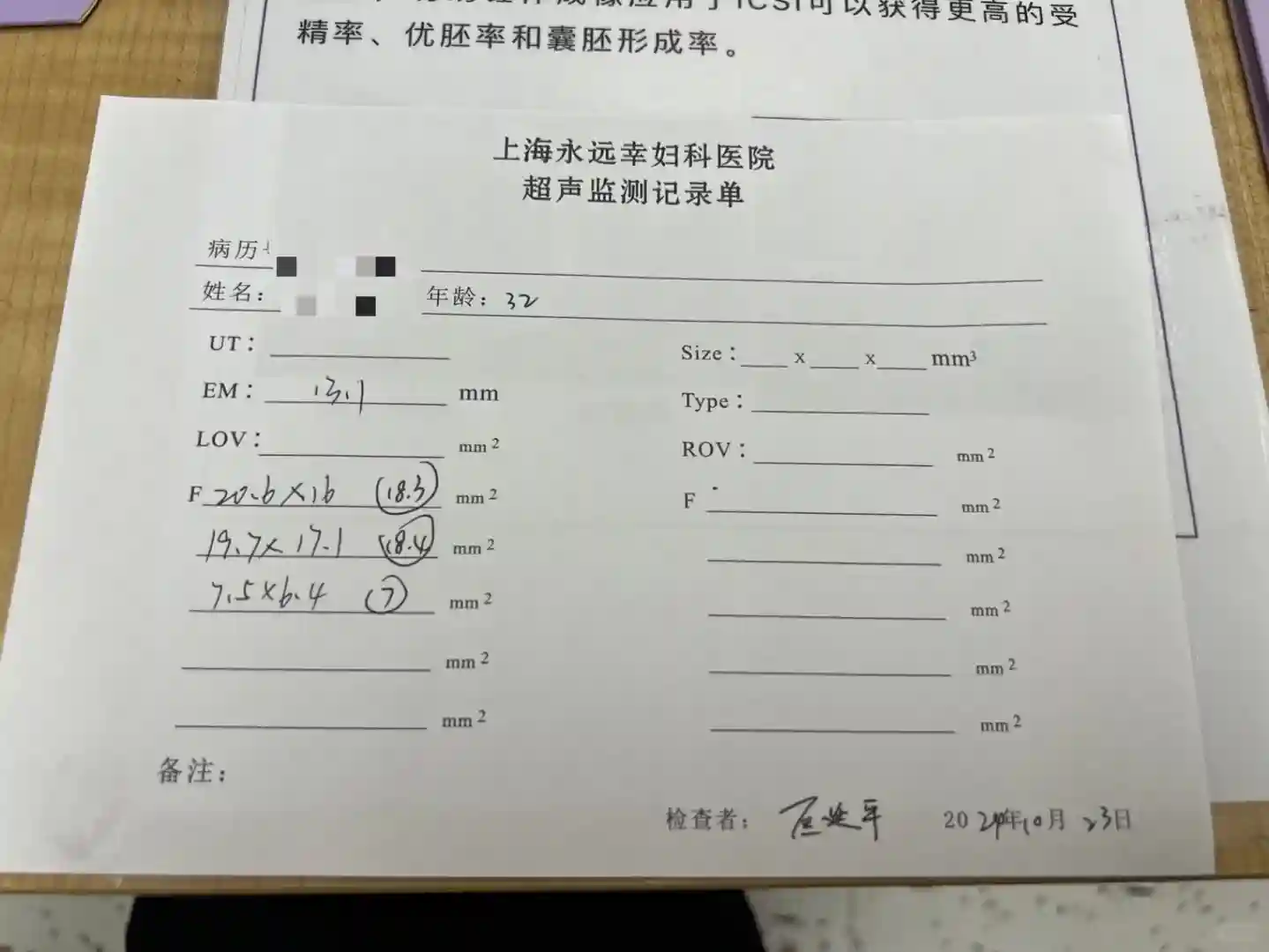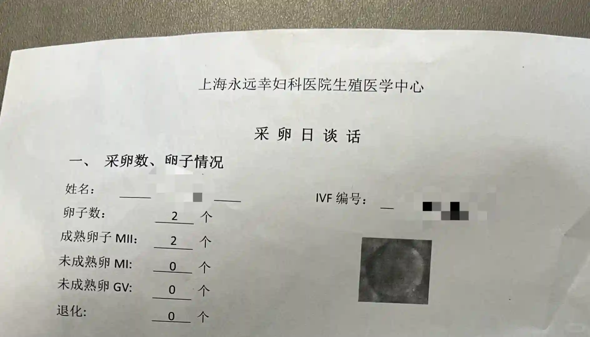 然后就是非常折磨的两天,连主任都在群里说经历“可以写电影”,夜针后24小时紧急取卵取到一个空泡,主任立刻叫停,吩咐再吃一粒扶他林和凌晨4点塞药,然后一晚上没睡着,第二天上午第一台手术(7:45开始,辛苦护士小姐姐们和张医生了)成功取到两个!主任的判断没有错,前一天两个大的都没熟,第二天二取的时候熟了!连空泡都取到了!且两个都是M2!(图4)