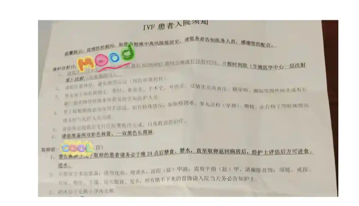 审证抽血后回到登记室门口听护士宣教(图4),总共十多分钟,建议准备纸笔记录或者录音。重点事项有:女方必须在取卵前持有24小时核酸,除三院以外的核酸都需打印,当天下午2:00开始打电话82265047询问夜针时间。这天上午男女双方都需要抽血,在三院做鼻拭子核酸。上午离院前最好买好取卵或移植需要的防滑袜子。