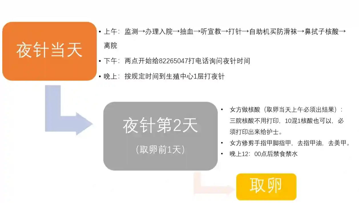 下午返回医院,看验血结果,做阴超。助手会开这几天的药,约好下次返院监测号(一般是打4~5天返院),开下次B超单。然后拿病历到登记室登记,护士会讲注意事项:进周后不能剧烈运动或同房,男方在某个日期排精一次。