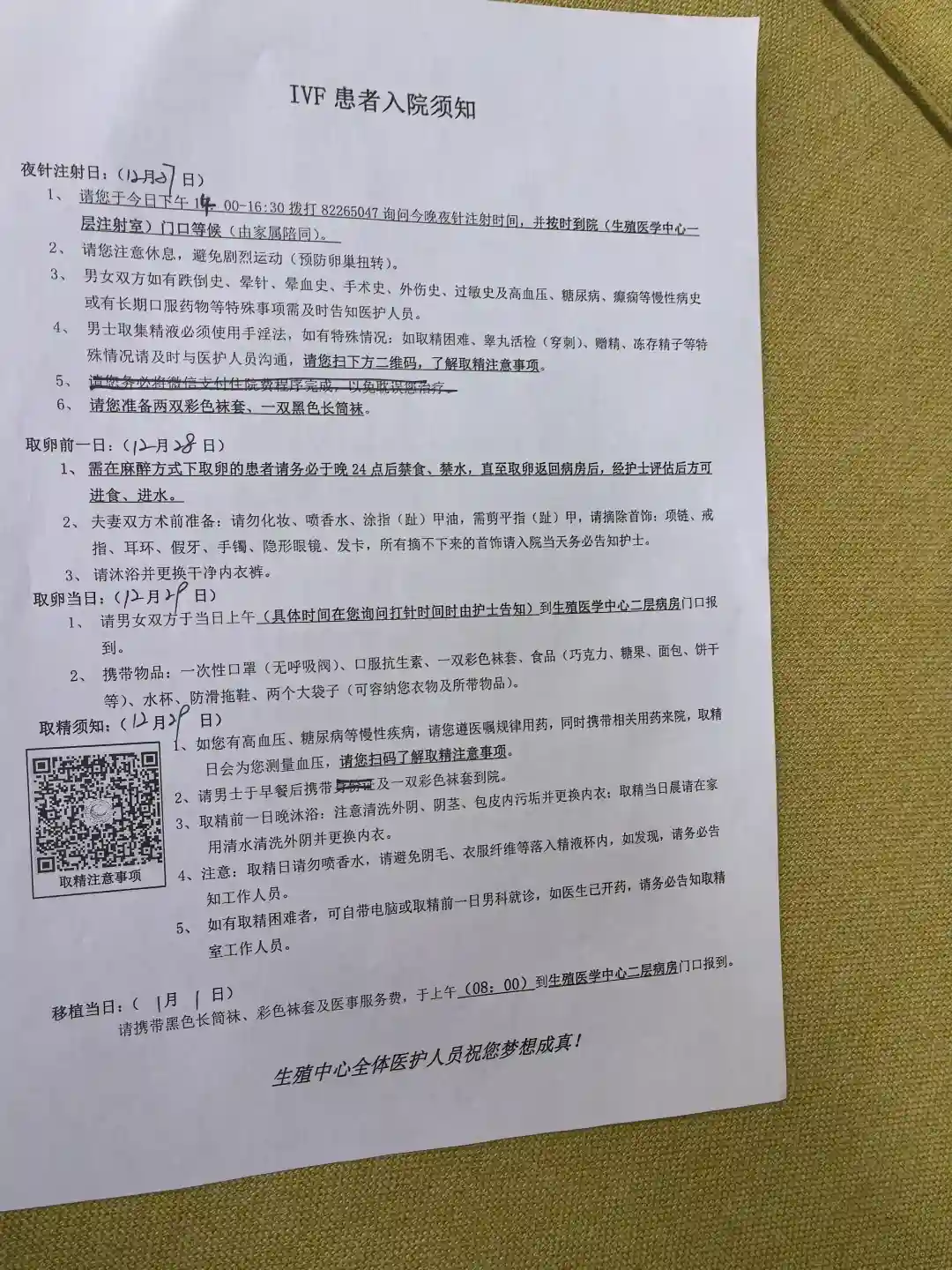 2024.12.14 第五次人授失败,月经前5天,返院就医,定试管方案