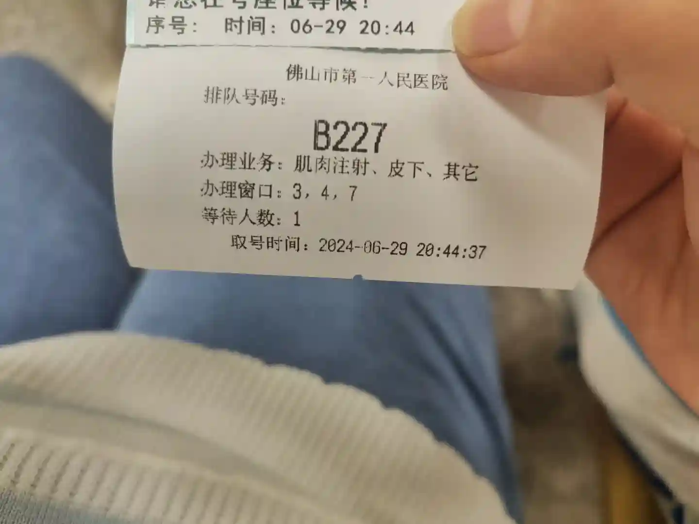 2、6.29晚上9:30夜针,晚上8:45就到达急诊那边的注射区域取号,取号时候跟护士主动确认9:30打夜针、夜针注射名称及其数量(绒促1支打屁股,曲谱2支打肚子),护士挺好会回复你确认(医生让我打夜针一定要跟护士确认,以防有误!),护士也会跟你说9点半左右才叫号的,然后我们去一楼大堂其他座位坐着等待。晚上9:05我们过去注射室看屏幕,看到号已经在对应注射室叫过,我们去对应注射室问里面的护士,护士说9:30夜针要9:25开打,她会人工叫号的。到晚上9:25,注射室护士直接用嘴叫号和姓名进去打。