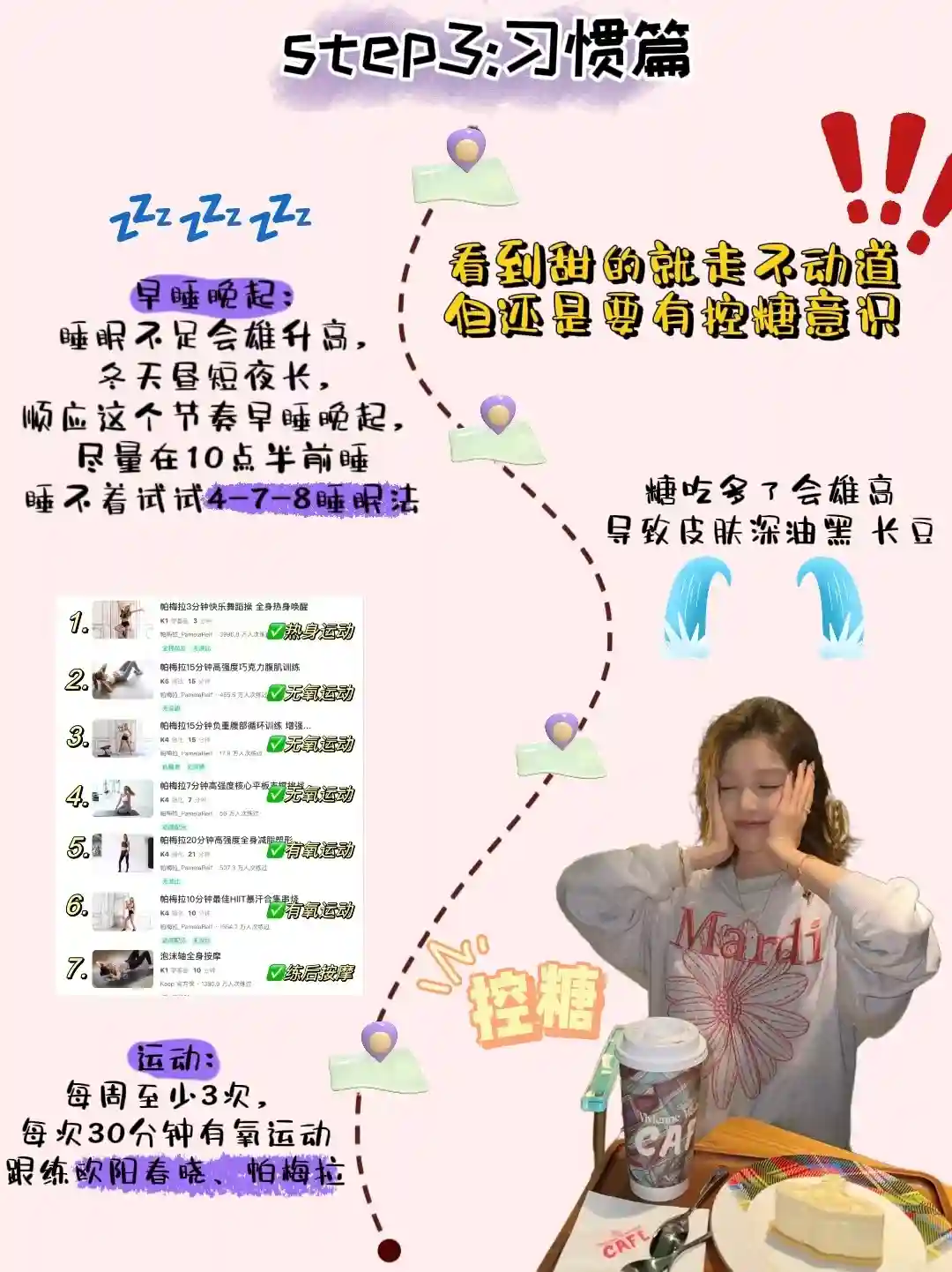 上大学前我也是小透明,长期熬夜节食→导致内分泌失调→雌激素失衡,皮肤变得蜡黄粗糙、唇毛明显,姨妈不规律、发缝离家出走.....