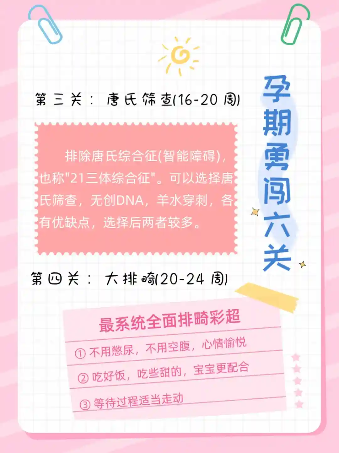 16-20w 无创DNA(唐筛),无创DNA也分为两种,一种是只能看三种染色体🧬的,另一种无创plus看的更全,但现在技术准确率不高,容易误检造成焦虑。最高级的是羊穿,看的最准确,也有一定危险性。