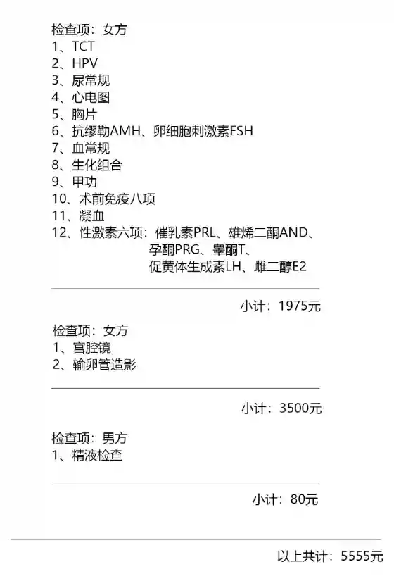 等结果出来,术前检查没有问题的情况下,第二次医生开了宫腔镜和输卵管造影的单子,共3500元(其中医保支付1690,个人支付1810)。