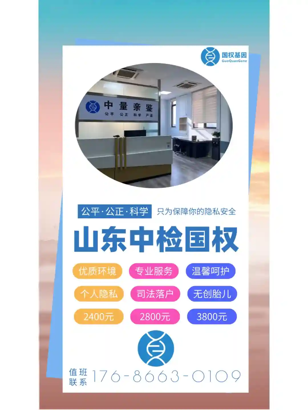 无创胎儿亲子鉴定属于一种个人亲子鉴定,鉴定结果仅供个人了解。在做无创胎儿亲子鉴定可在怀孕5周以上完成,使用专用试管提取孕妇10ml静脉血,男性可以一起抽血,也可以使用常规样本或特殊样本之一。亲子鉴定完成后,别忘了在评论区分享你的故事,你的经验可能会帮到很多迷茫的朋友!山东亲子鉴定哪里可以做?服务范围:山东(淄博、枣庄、东营、烟台、潍坊、济宁、泰安、威海、日照、滨州、青岛、德州、临沂、青岛)省内均可咨询