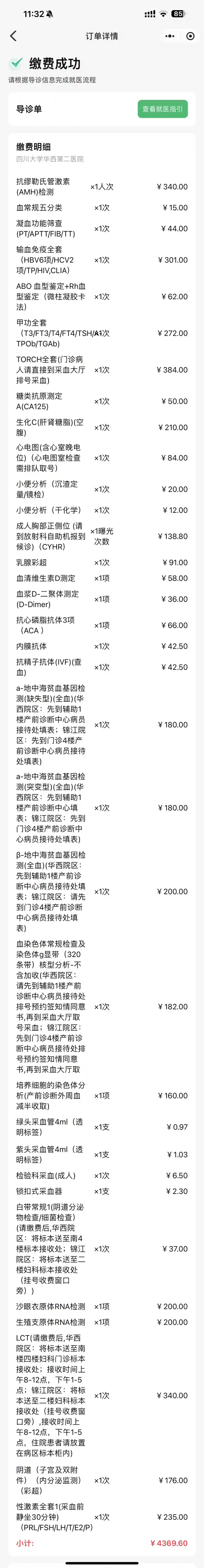 6️⃣正常来说如果你准备的是一天的话,下午就可以做乳腺和yin道彩超了,基本上下午4点前就能搞定,可惜我因为下午有事情,彩超没有做,自己约已经要1.21和1.24号才能做了,而且还得跑两次,一个是锦江院区一个项目是华西院区🤣