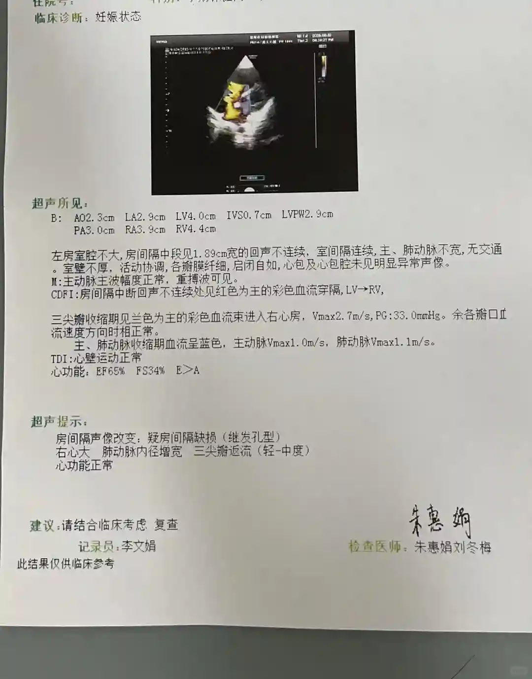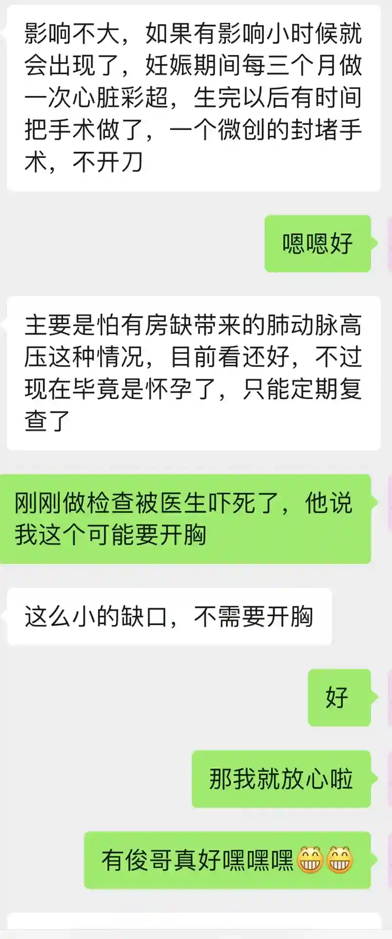 。总结如果还没怀孕,可先做个心超以防万一,如果怀孕了发现自己有心脏病,一定要听专业医生的建议,不要怕麻烦,生产的时候,不要霸蛮,随时告知自己的感受。这一点我做的不是很好。虽然结果有惊无险,但是回想起来还是后怕,毕竟正常生产都有那么多意外,何况有基础疾病的呢?#孕妈妈心脏病怎么办 #房间隔缺损 #孕期日记 #育儿