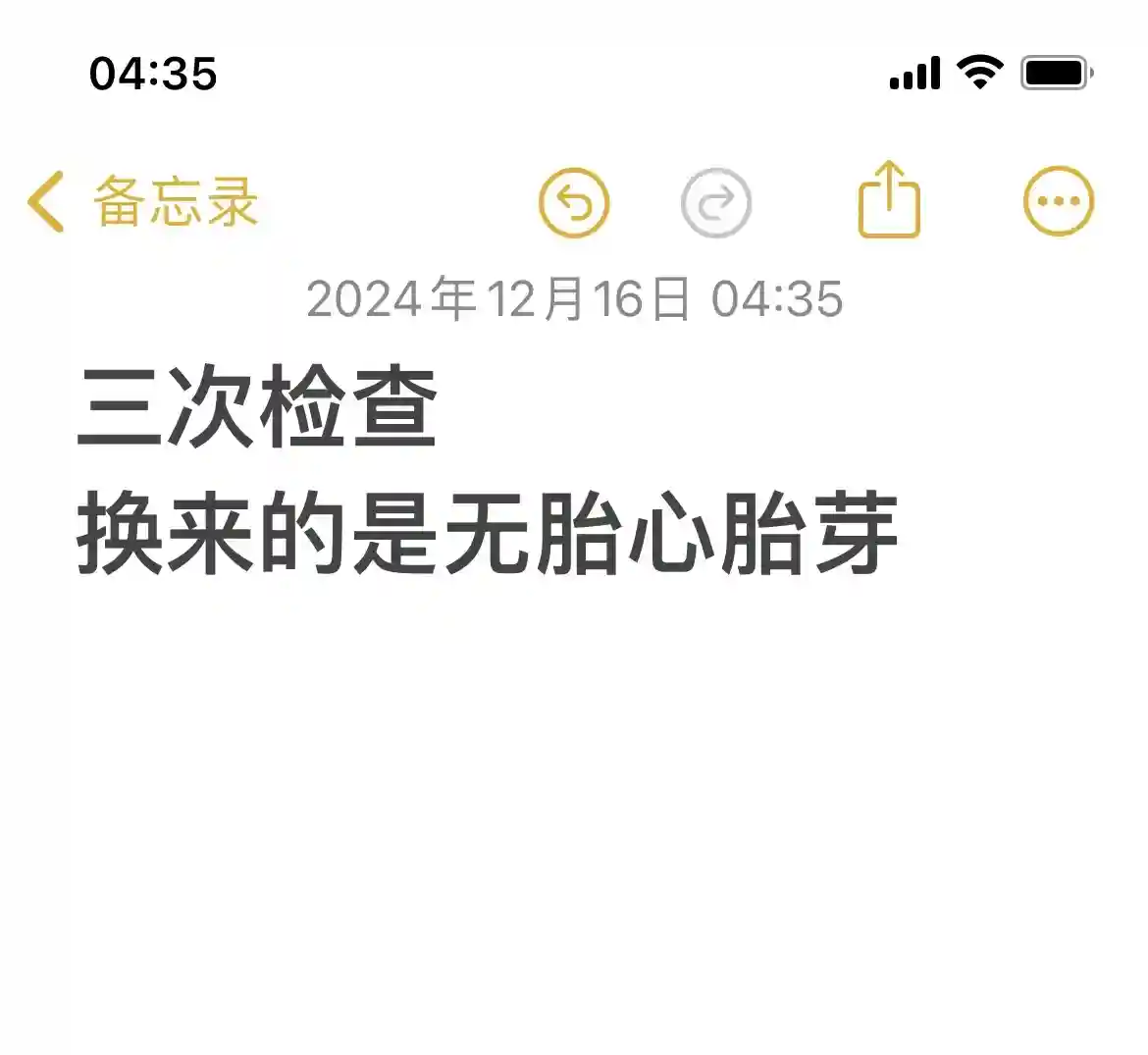 第三次检查,做阴超的时候,医生反应就让我感觉不太好,找了半天,才看到一个特别小的孕囊,说没有胎心胎芽,让我再去问一下医生,当时心里就凉了,医生看了报告单,说可能发育不太好,让我再抽血确认一下,看完抽血的结果,说没有希望了,我非常不理解,可能是我知识储备不够,真的不懂,我和我老公身体健康,无不良嗜好,我月经规律,为什么会这样真的非常伤心,对于怀孕这件事本来就很担心,没想到出现这样的情况,不知道如何调整心态#怀孕 #早孕检查 #怀孕日记