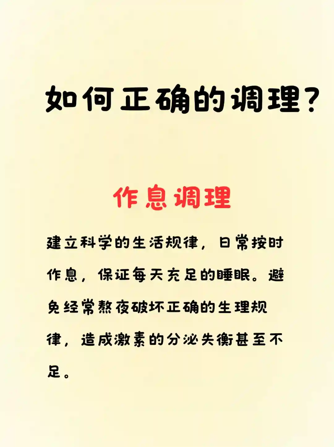 建立科学的生活规律,日常按时作息,保证每天充足的睡眠。避免经常熬夜破坏正确的生理规律,造成激素的分泌失衡甚至不足。