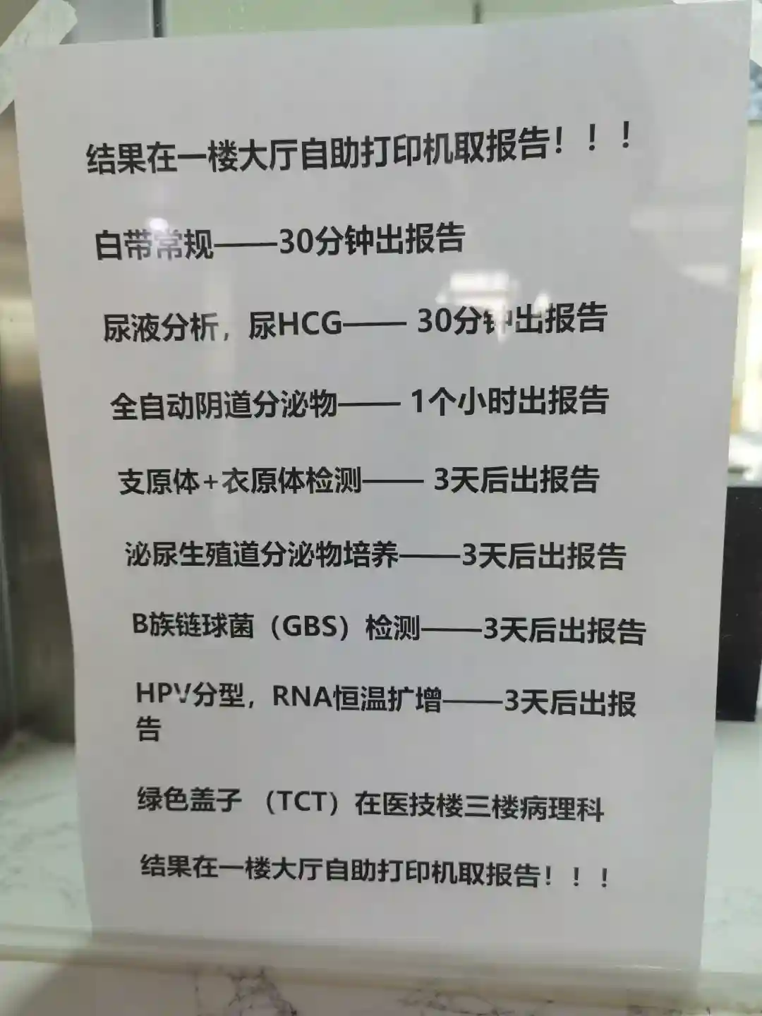 医生说要等部分检查出来才能做宫腔镜另一天再来,下午没等结果我就回家了,除了几个特殊的需要到检查的地方拿结果,其他报告一楼机子上就能打出来。(图三)