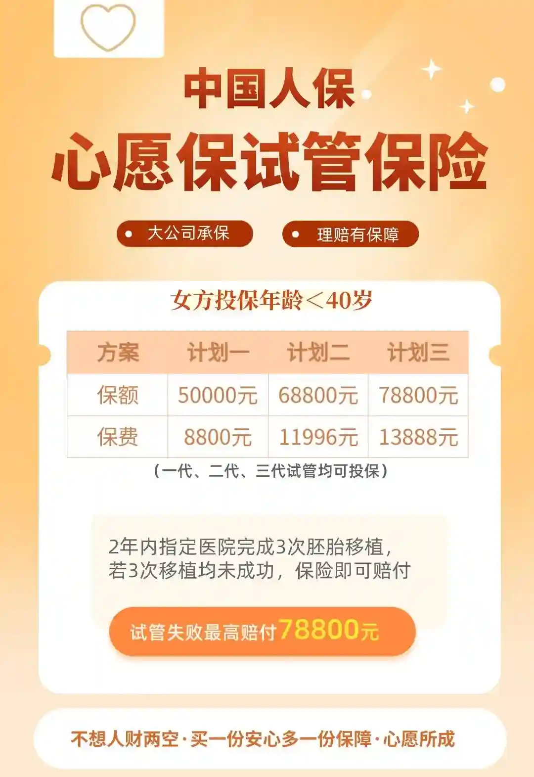 🙆🏻♀️试管路上的兜底保障来了,中国人保心愿保试管保险,不成功赔付78800元。