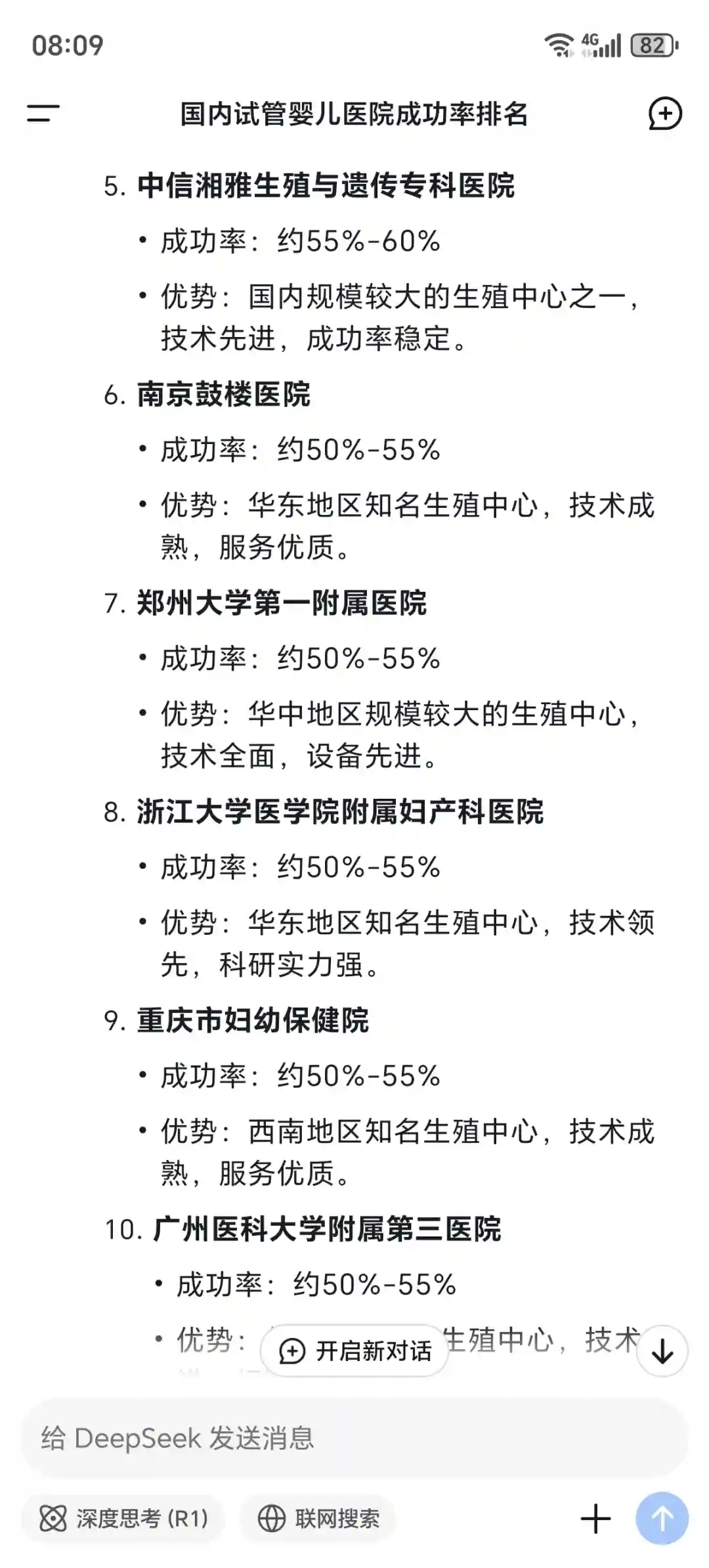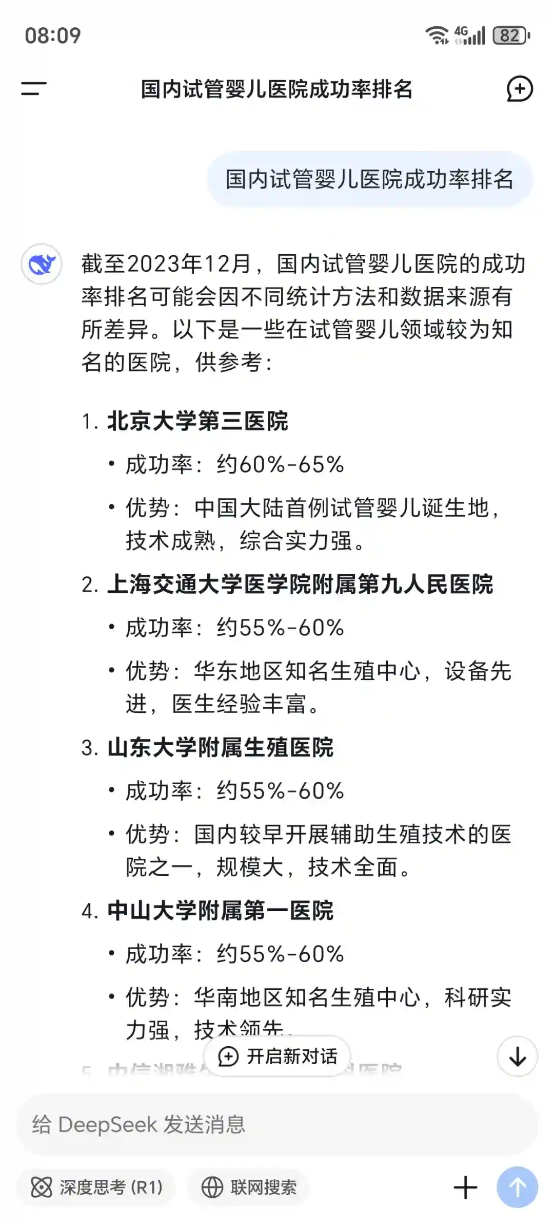 当我问deepseek国内试管医院成功率排名时 适合做供卵吗