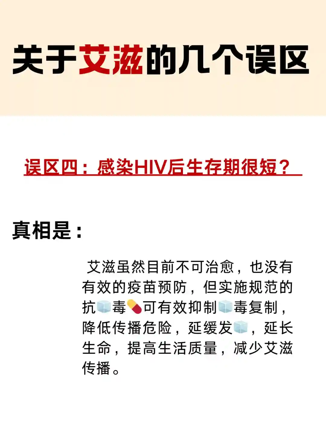 艾滋虽然目前不可治愈,也没有有效的疫苗预防,但实施规范的抗🧊毒💊可有效抑制🧊毒复制,降低传播危险,延缓发🧊,延长生命,提高生活质量,减少艾滋传播。"