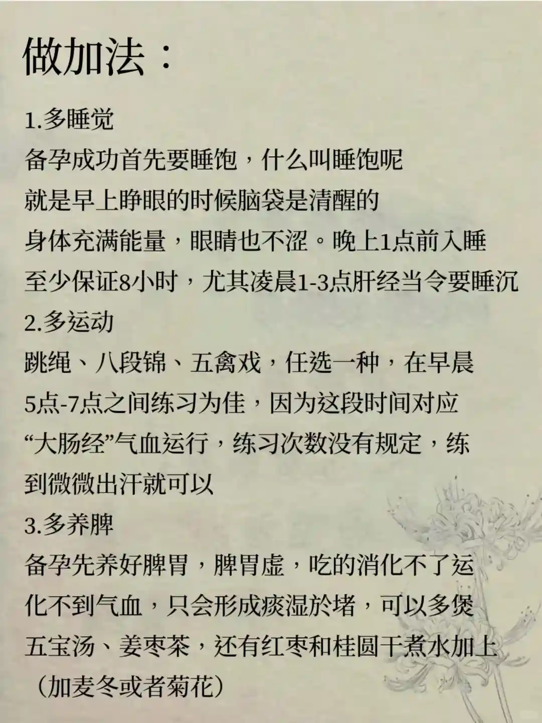 备孕先养好脾胃,脾胃虚,吃的消化不了运化不到气血,只会形成痰湿於堵,〽可以多煲五宝汤、姜枣茶,还有红枣和桂圆干煮水怕上(加麦冬或者菊花)