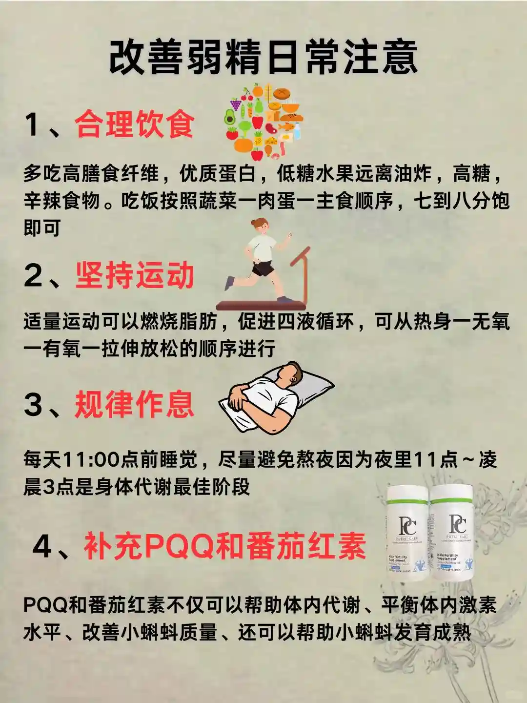✅1.PQQ和番茄红素这俩是弱精男性必不可少的备孕营养,稳定激素水平,提高小蝌蚪质量和活力,满足备孕营养需求,改善不孕体质,帮助身体达到适孕状态,从而备孕成功。一直选择的是poemcare精喜瓶,这款营养全面成分含量丰富,我老公吃了两个周期左右,现在我已经升级当妈妈啦~迫不及待分享给需要的姐妹们!老公就吃了这一瓶没有再吃其他的了,去问了专业的说吃到生产最好了