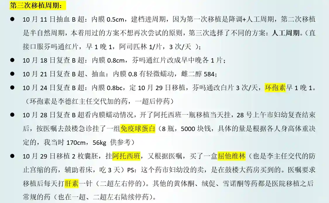 南京市妇幼第三次移植(成功)过程记录