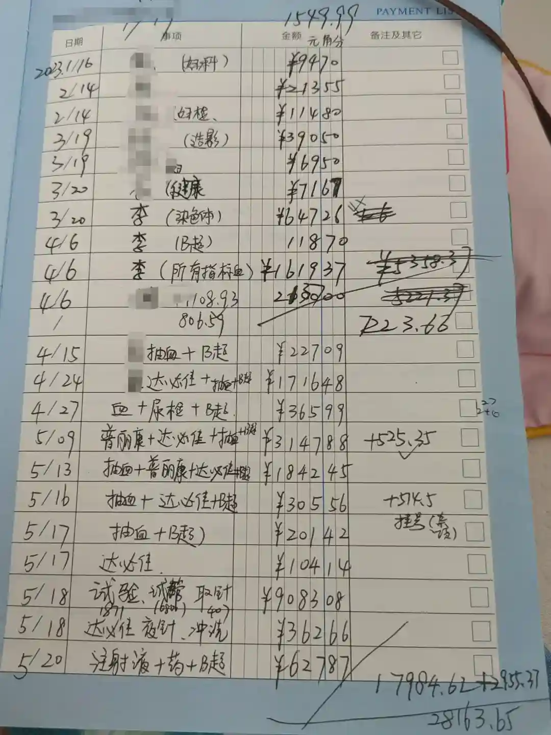 第一张图⭕️起来的是跑医院的日期,后两张是详细的进度和花费。
