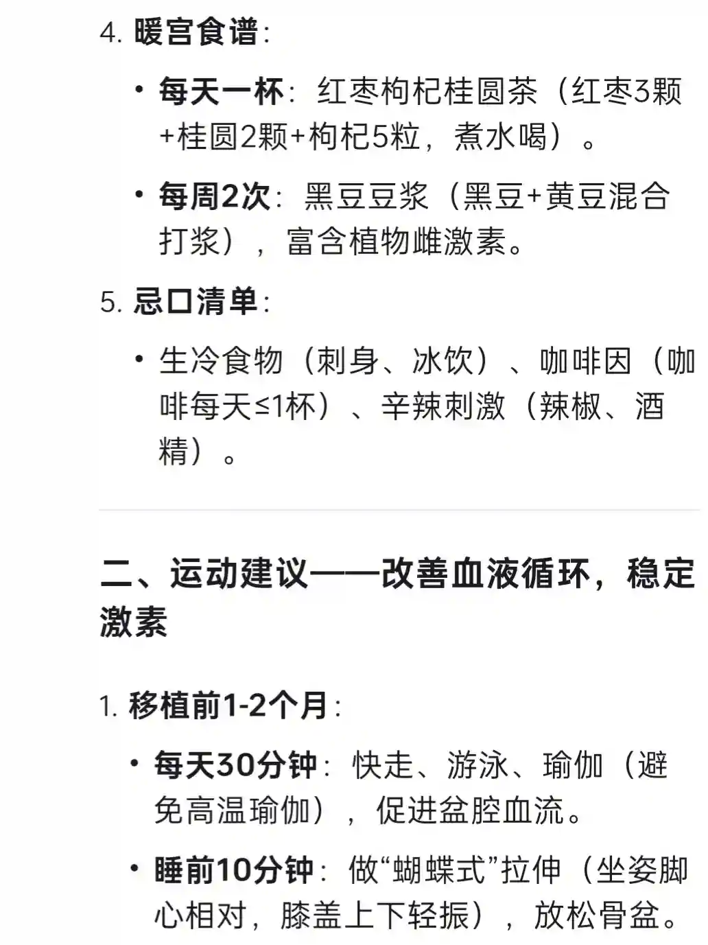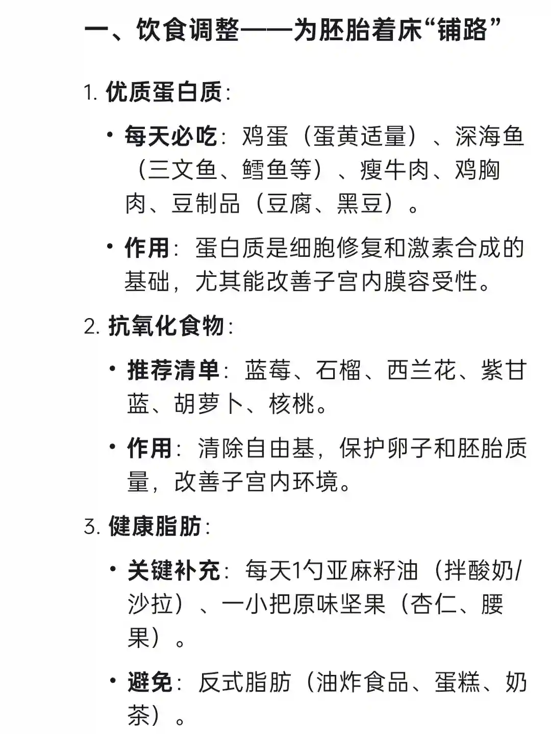 1.饮食调整,为胚胎着床铺路(还可以让它跟你的身体情况,生成一份饮食清单哦~)