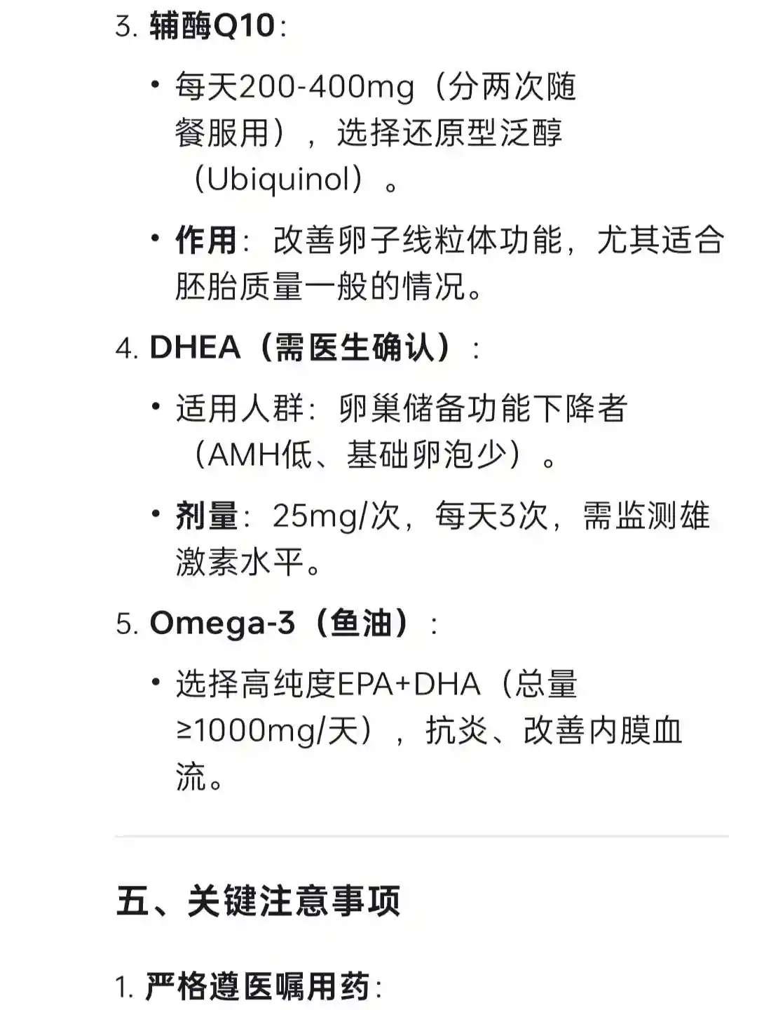 4.保J品选择,针对性补充(叶酸、VD、辅酶Q10、DHEA、鱼油,还贴心地告诉它们的作用,太暖了)