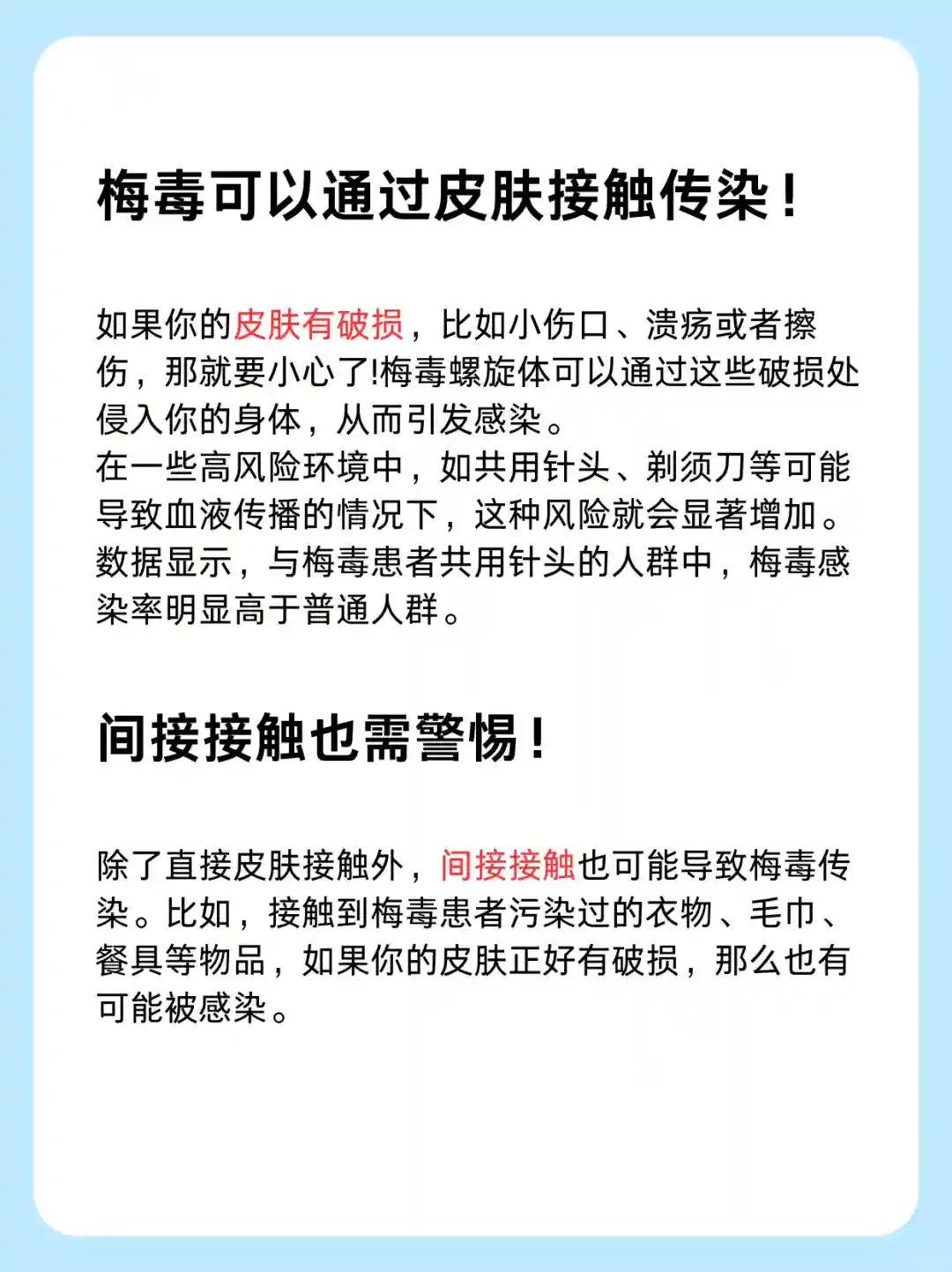 小心⚠️梅毒可以通过皮肤接触传染‼️
