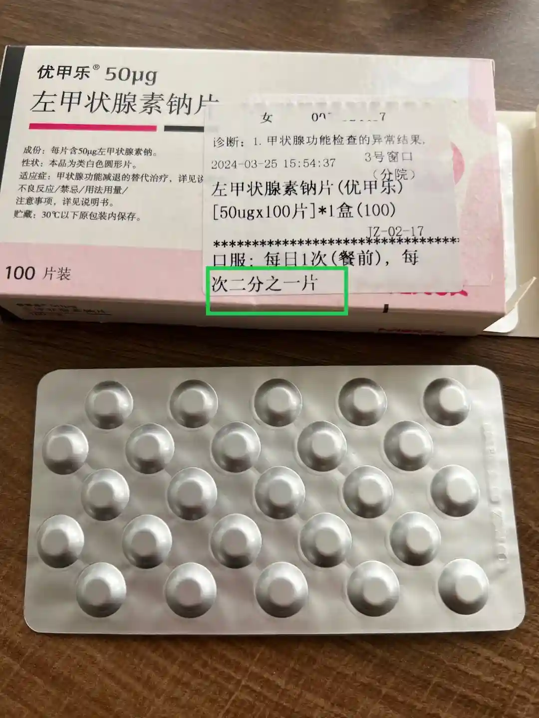 开了优甲乐,每次半片,一个月复查,