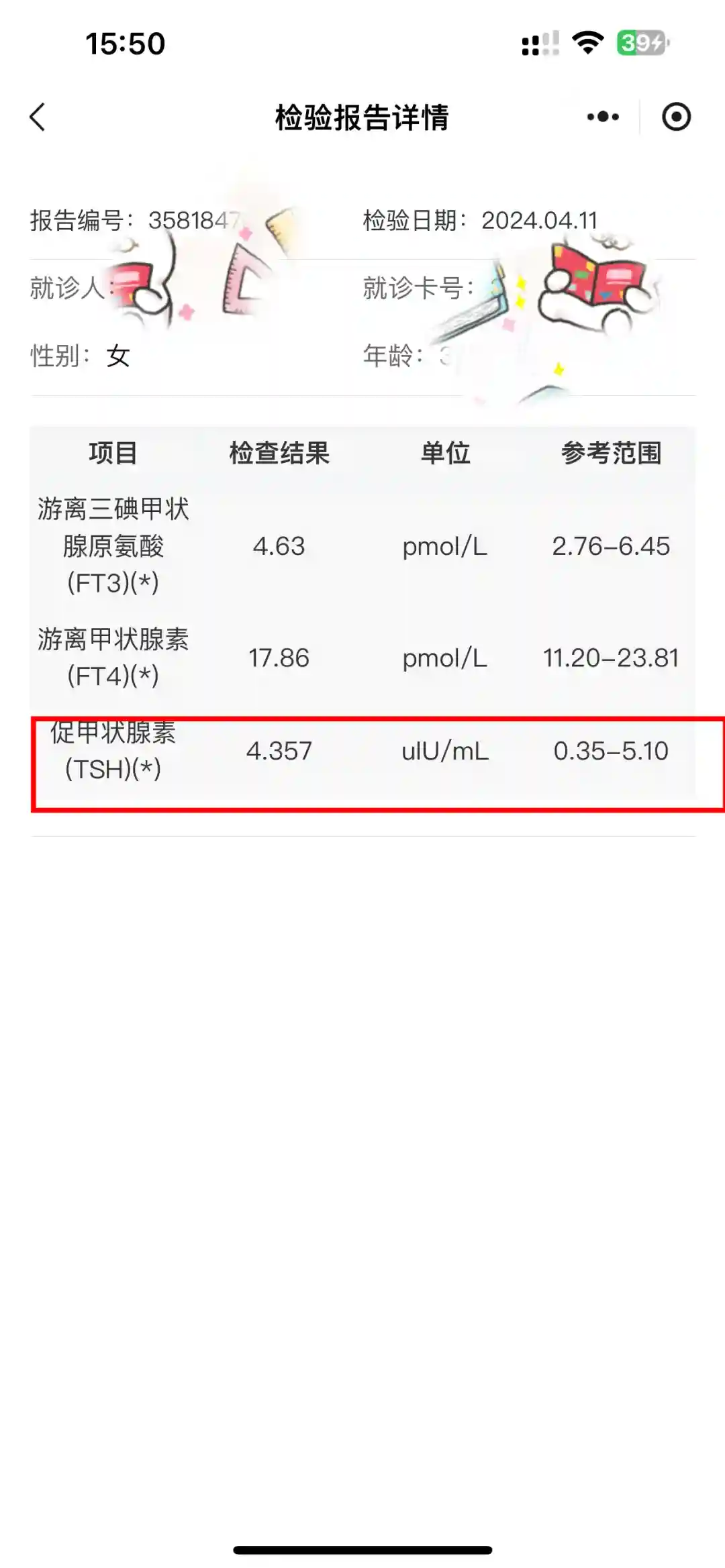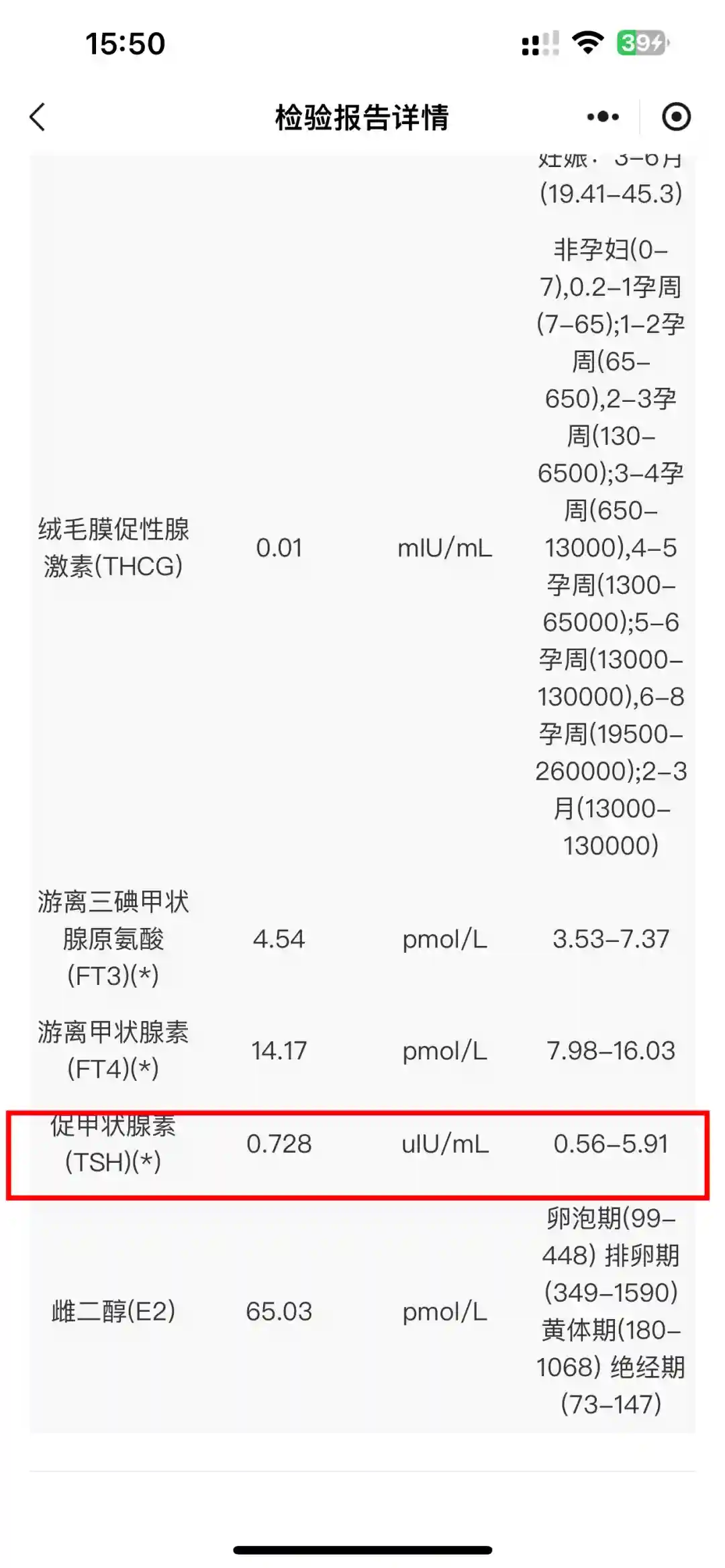 第一次查TSH,报告是回家在手机上看的,