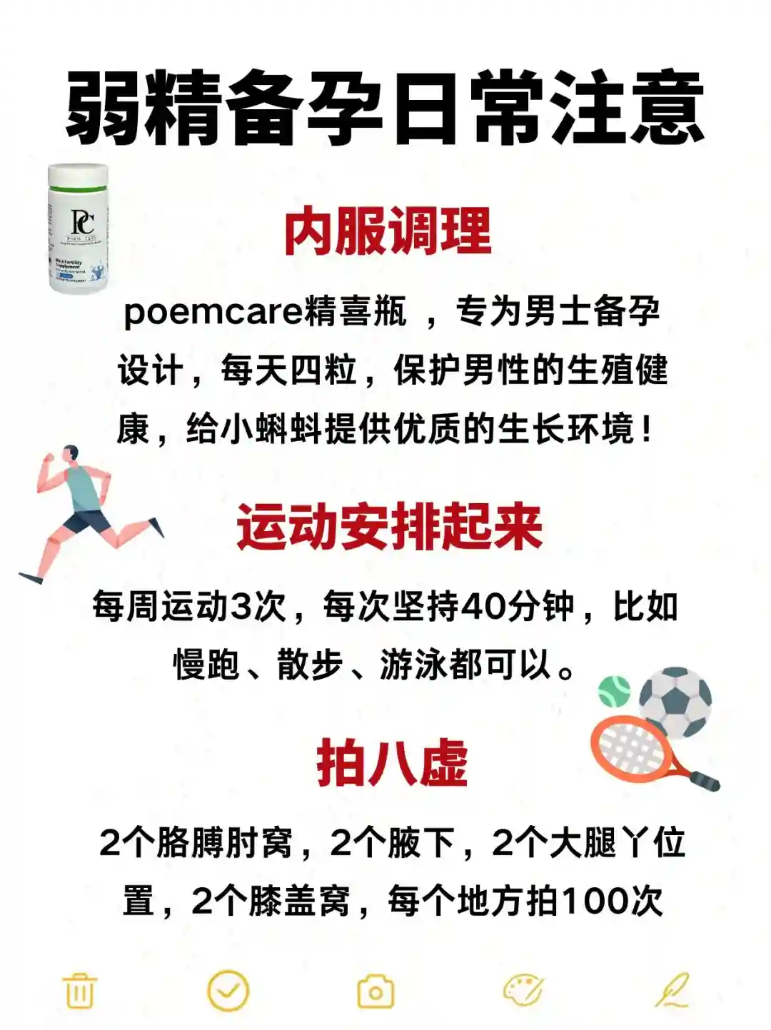 还好二胎闺蜜给我分享了弱精调理的方法,她说现在备孕压力大,生活习惯不注意,弱精也是正常的事,让我放宽心,不要焦虑,她当初也是按着这个法子怀的双胞胎,让我们平时注意饮食均衡,不要吃刺激的尽量清淡,少熬夜,还给拿了一个内服,就这样坚持了一段时间认真调理,现在婆婆对我关爱有加,整天围着我和宝宝转哈哈哈~