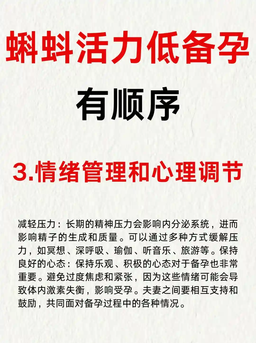 后来好好调理了一番,发现这方面大有学问,按照顺序步骤一步一步来,才把蝌蚪养好了,能看得见游得快的小蝌蚪,不久前已经成功上岸,产检一路绿灯!