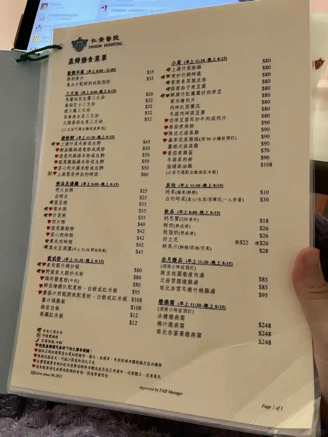 仁安的产妇餐食很不错,有套餐,单点更划算。产后第二天可下床后,就可到喂养室亲喂,让宝宝多吸方便开奶,我是到出院前一天才有奶。另外,医院提供的炒米茶不要喝的太多,我可能喝的太多,导致石头胸。