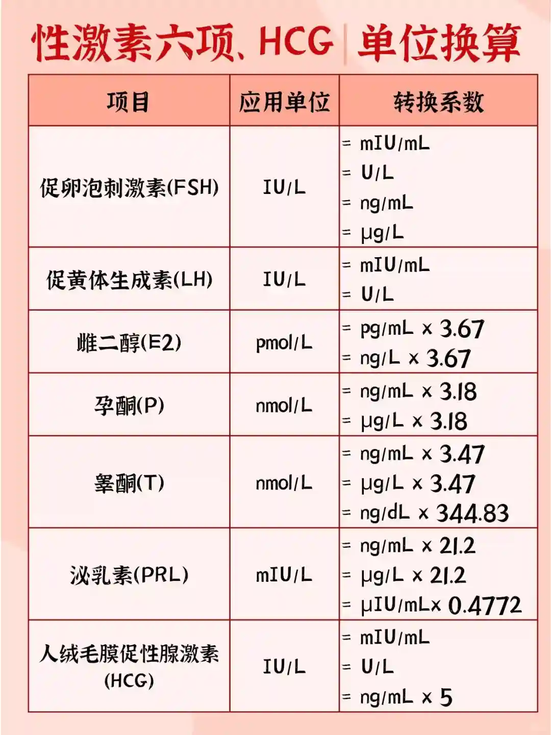 HCG、性激素六项、甲状腺功能、胰岛素、血糖大单位和小单位傻傻分不清,不会换算?