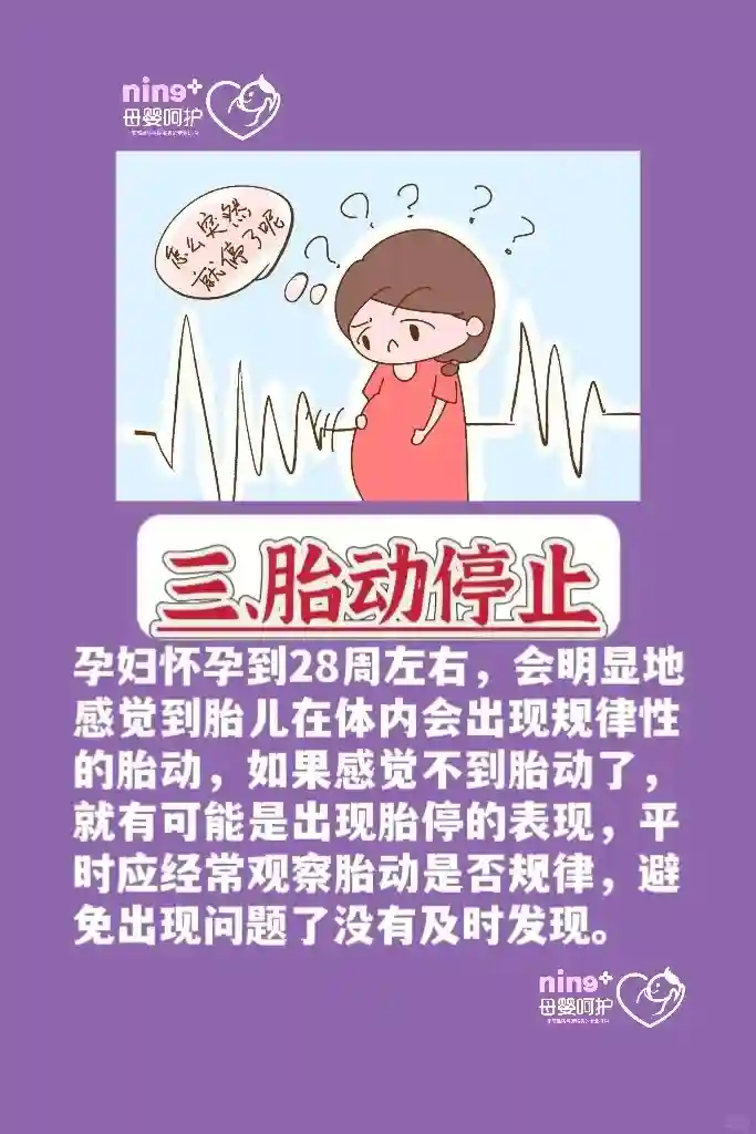 3、胎动停止:孕妇怀孕到28周左右,会明显地感觉到胎儿在体内会出现规律性的胎动,如果感觉不到胎动了,就有可能是出现胎停的表现,平时应经常观察胎动是否规律,避免出现问题了没有及时发现。