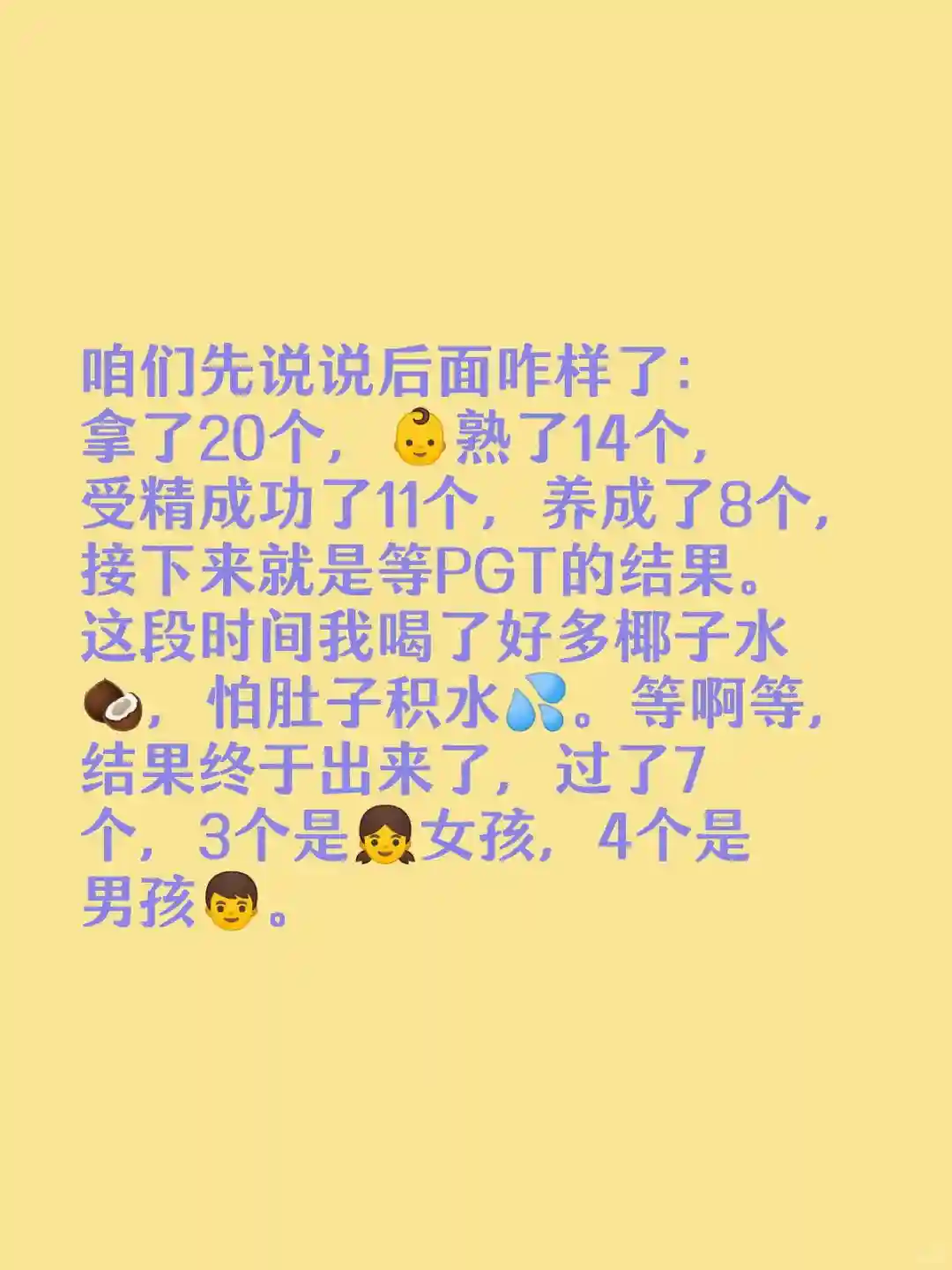 💘接下来几天也没有感觉到身体有什么异常,就像从来没有移植过一样。再次回到Hospital做血检,心情非常忐忑不安,因为几乎没有任何感觉,让我不禁开始担忧起来,不会前面的努力都白费了吧。但是我是非常幸运的,结果出来了,怀了!心里的那块大石头终于落下了,但是为了避免其他意外,接下来的一个多月我们还是留在美国,直到确定胎儿正在健康稳定的发育,我们才放下心来回国,也是顺利在美国毕业,喜提一位女宝宝