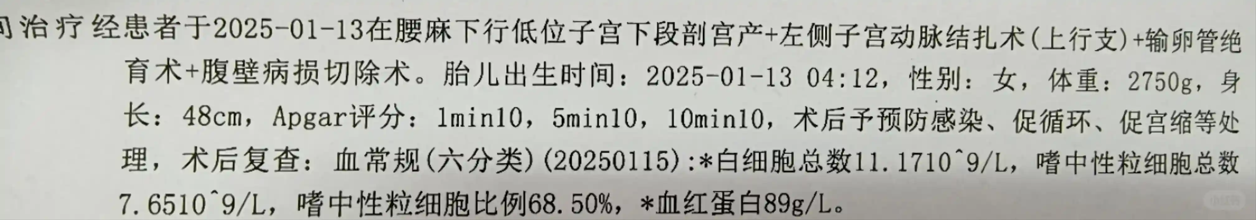 ➡️入院:1月13日凌晨2点多大出血(完全性前置胎盘)紧急住院剖腹产,3点20入手术室,5点半出手术室。
