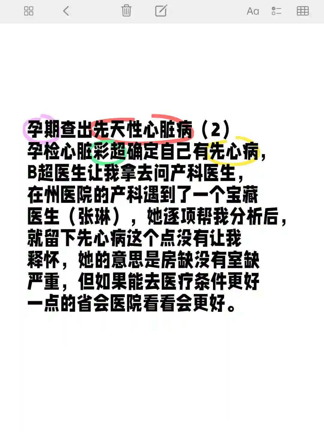 孕检心脏彩超确定自己有先心病,B超医生让我拿去问产科医生,在州医院的产科遇到了一个宝藏医生(张琳),她逐项帮我分析后,就留下先心病这个点没有让我释怀,她的意思是房缺没有室缺严重,但如果能去医疗条件更好一点的省会医院看看会更好。医生这样一说只能再去省城看看了,请了假,一家人就直奔昆明,事先想有先心病又要生孩子那就去延安医院看,提前挂了四个号,彩超专家号(丁医生)、心脏内科专家号、心脏外科专家号、产科专家号。彩超再一次确定先天房缺,双孔。内科专家什么都是不确定,没有给一个准话,也没有参考价值。外科专家,一个年长的医生说让我生,生了后再修补,这个专家说了心安了一些。又到产科,专家们商量了一会儿又问了老大情况,建议我不要冒险。又一次陷入了纠结,这时昆明亲戚说要不到昆华医院再看看,马上转到昆华看,这时队友的领导很关心,也非常感谢他(曾总),给我们提供了医生资源信息,我们打电话后联系上了产科专家,专家建议我们再在昆华做一个心超,然后继续观察。值得一提的是在昆华我们还看了一个心内专家(张医生),他说让我回去注意观察,现在即使早产生存机率很大,如果后期我心脏承受不了就剖,孩子也有很大的机会长大。而且遇到了一个同样问题的病友,她的是法四,也是咨询能否二胎,医生也让观察。很感谢昆华的这个医生,她让我留下孩子的心又坚定了。经历了两家医院为期6天的奔波检查,我们又回家了,就观察着,多产检,但经历了这一些,还是有些玻璃心了,生怕出什么问题,无形中也增大了心理压力。(未完待续)