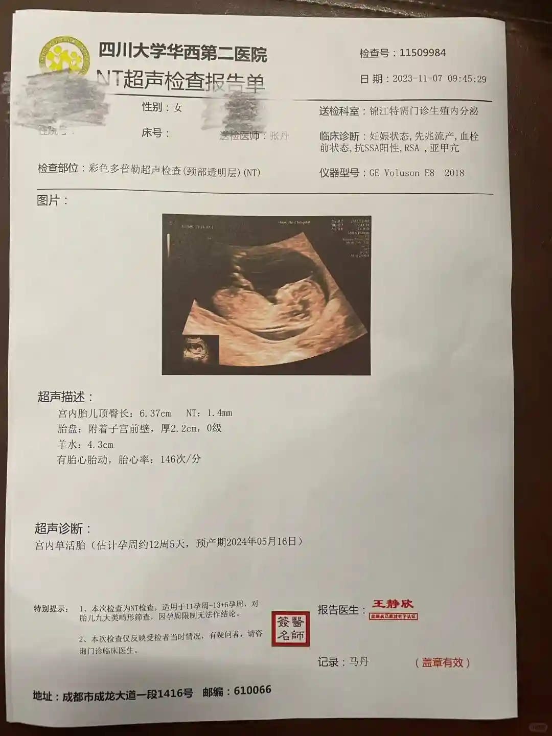 11.7号NT,一次性过,宝宝也确实很给力,张丹看着报告比我还激动,给我击掌✋,一直说真的是不容易,自身遇到那么多问题真的不容易,娃娃长得很好,调整用药一个月后复查…我说我都一年了,终于有结果了,他说中间都不重要,结果好就行了,自己走路那些要慢点哈,好贴心😂医生的职业是救死扶伤,张丹是目前我遇到这么多医生中,他是唯一让我觉得他把职业当成了一种热爱,看到我们这些孕妈的问题,他都安抚,一直鼓励,成功了他都会由衷的替我们高兴和祝福,谢谢张丹,希望每个妈妈都能如愿以偿💪