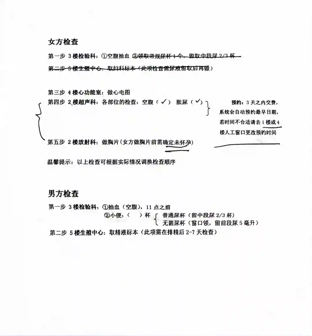 听了前辈姐妹们的经验,姨妈第二天挂号,抽血检查,抽了10管血,检查项目具体看清单,空腹11点前抽完,还检查了心电图,预约了乳腺、肝胆胰肾输尿管膀胱、胸片等,女方共计花费2958.11。