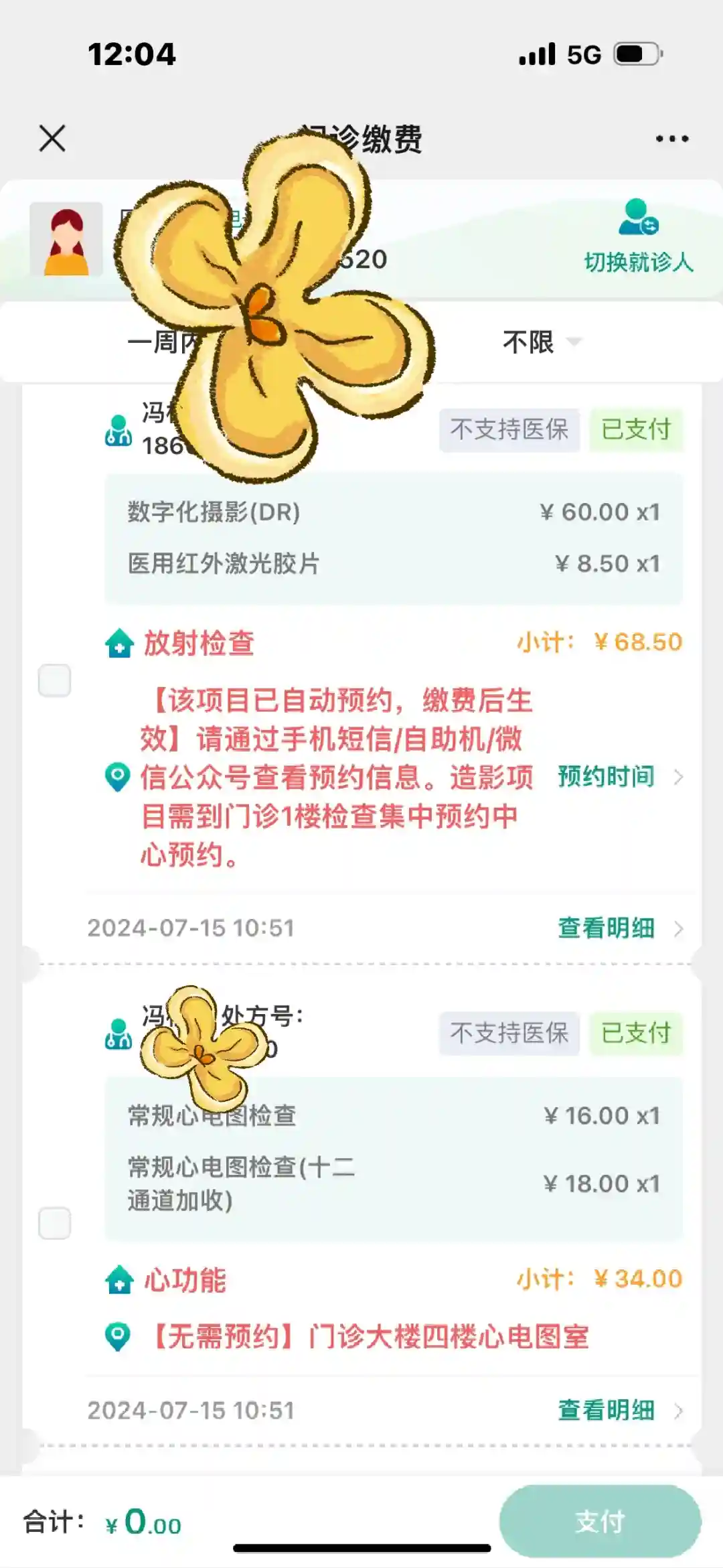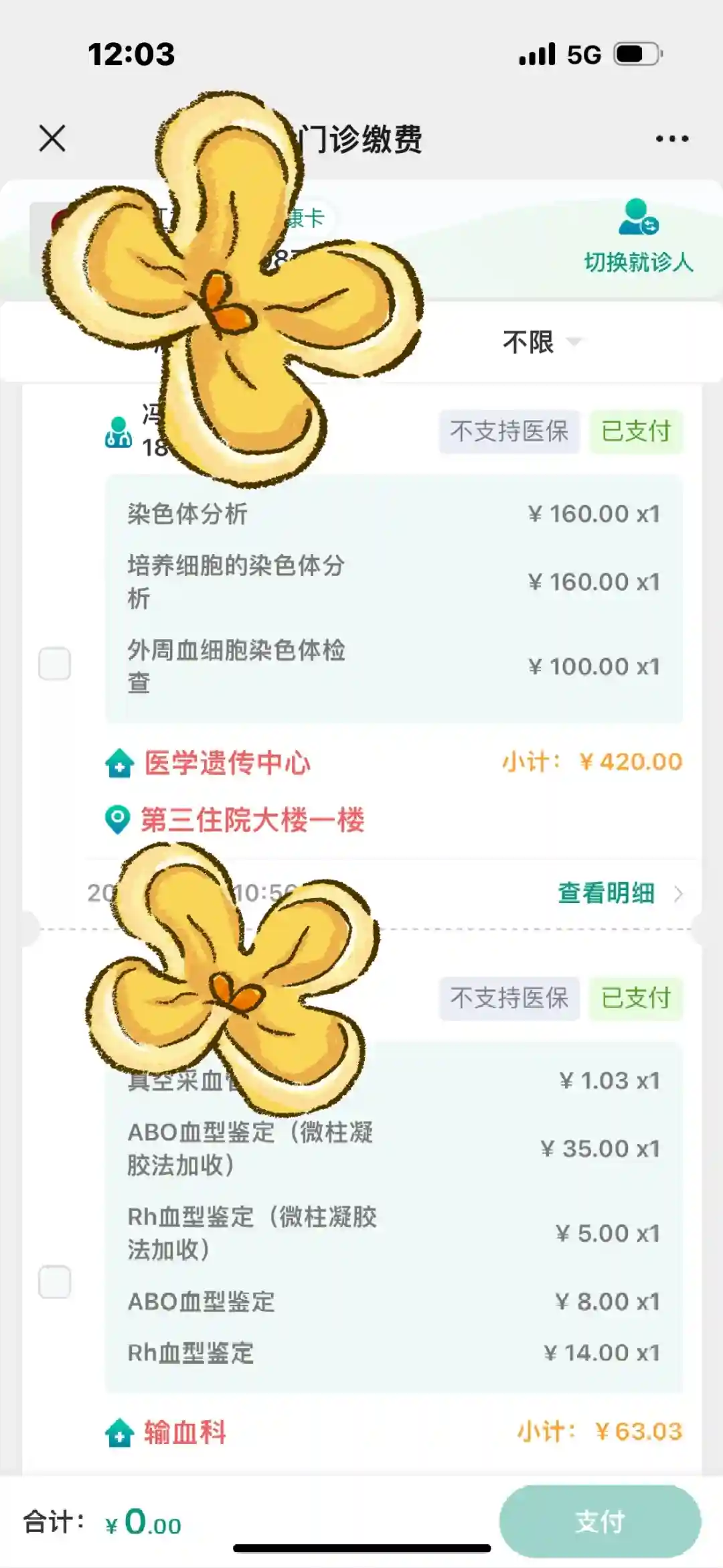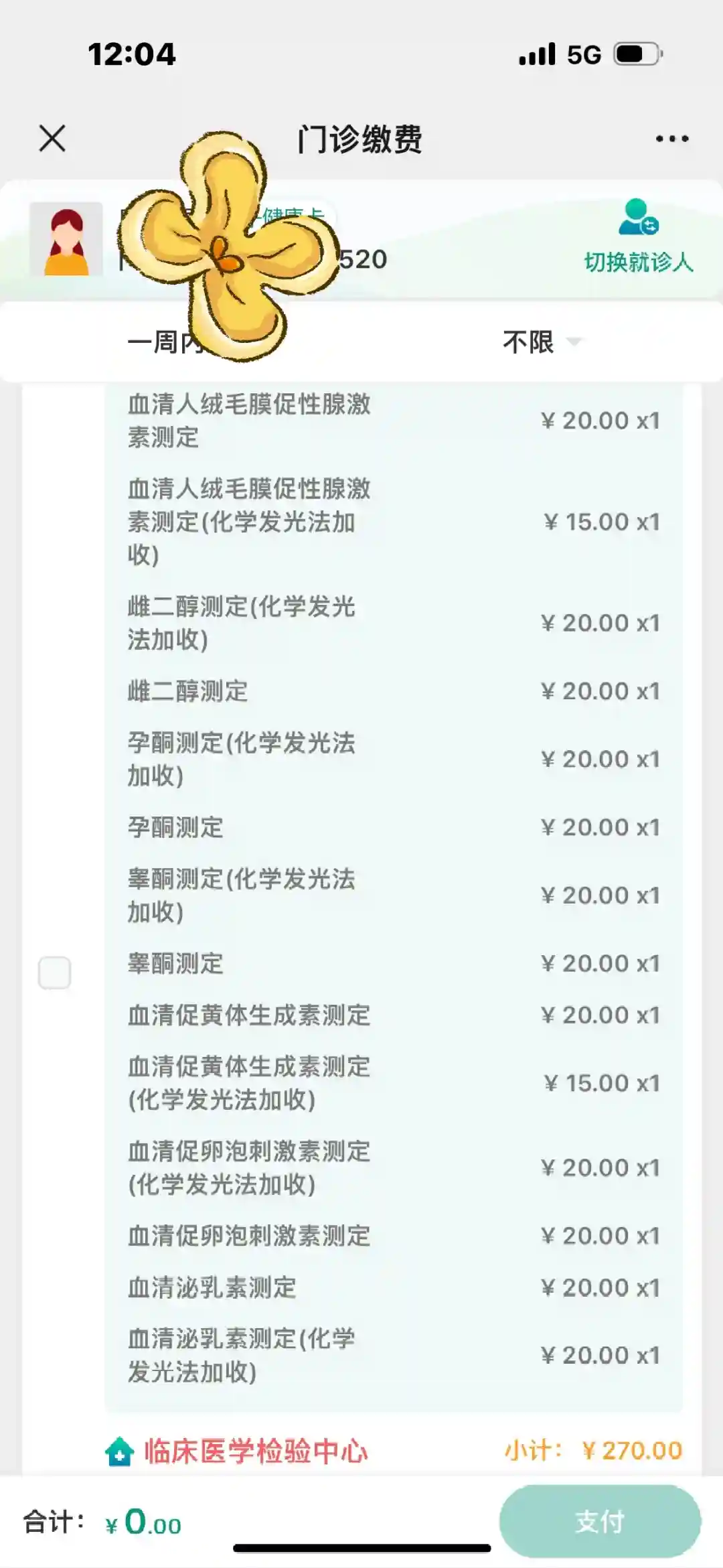 男方抽血,检查尿液,花费共计1137.86 先天性心脏病