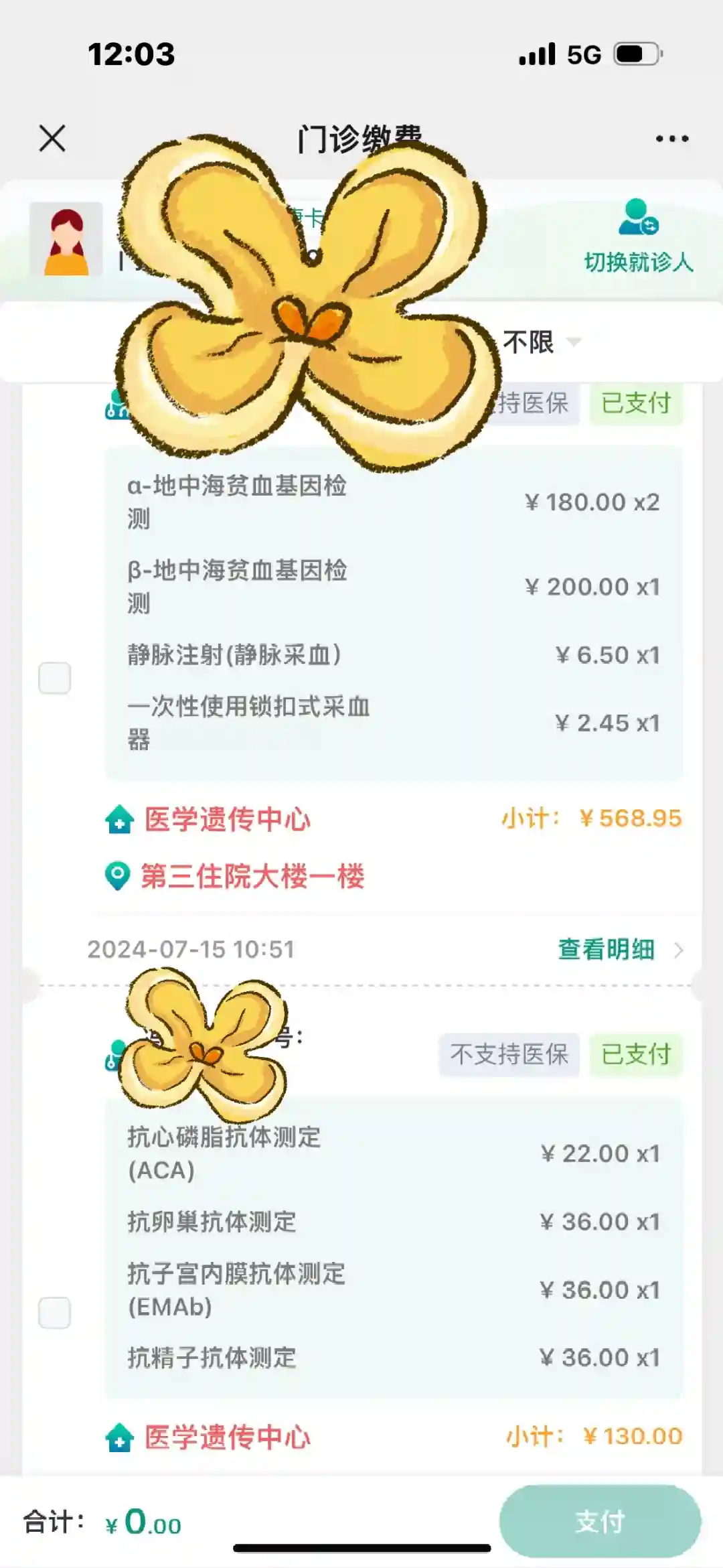 男方抽血,检查尿液,花费共计1137.86试管第一次检查7月15号。共花费4095.97元#备孕检查