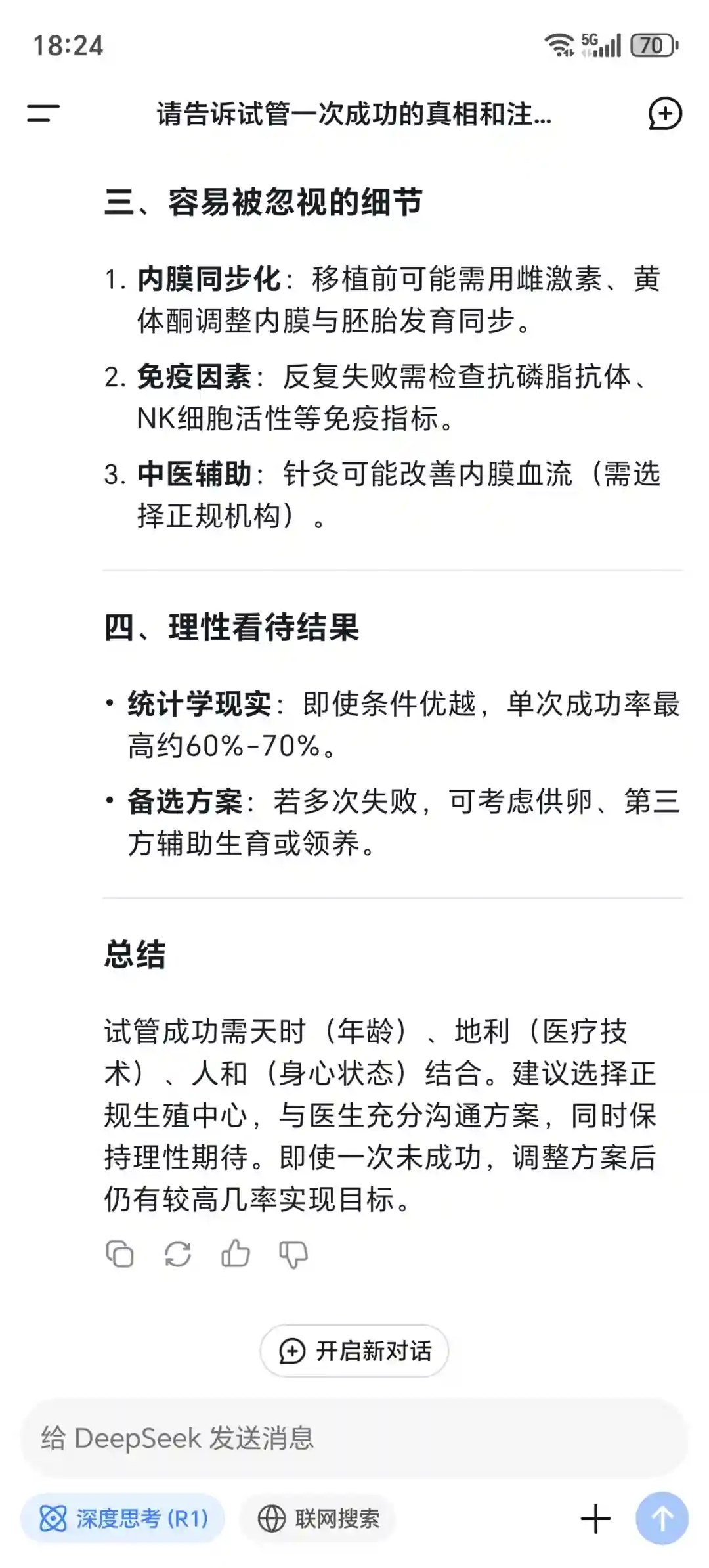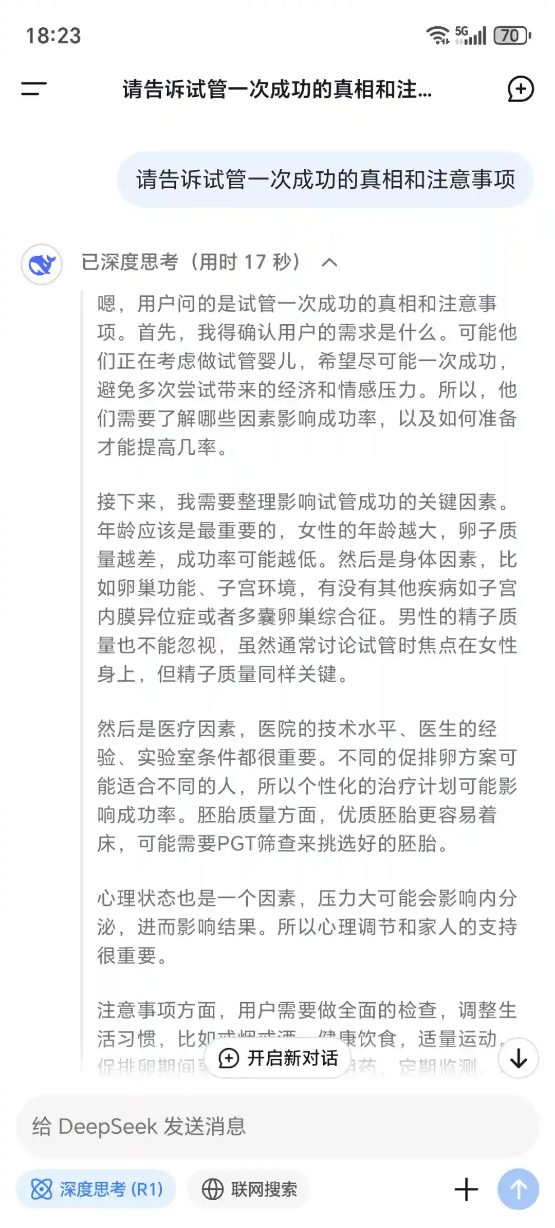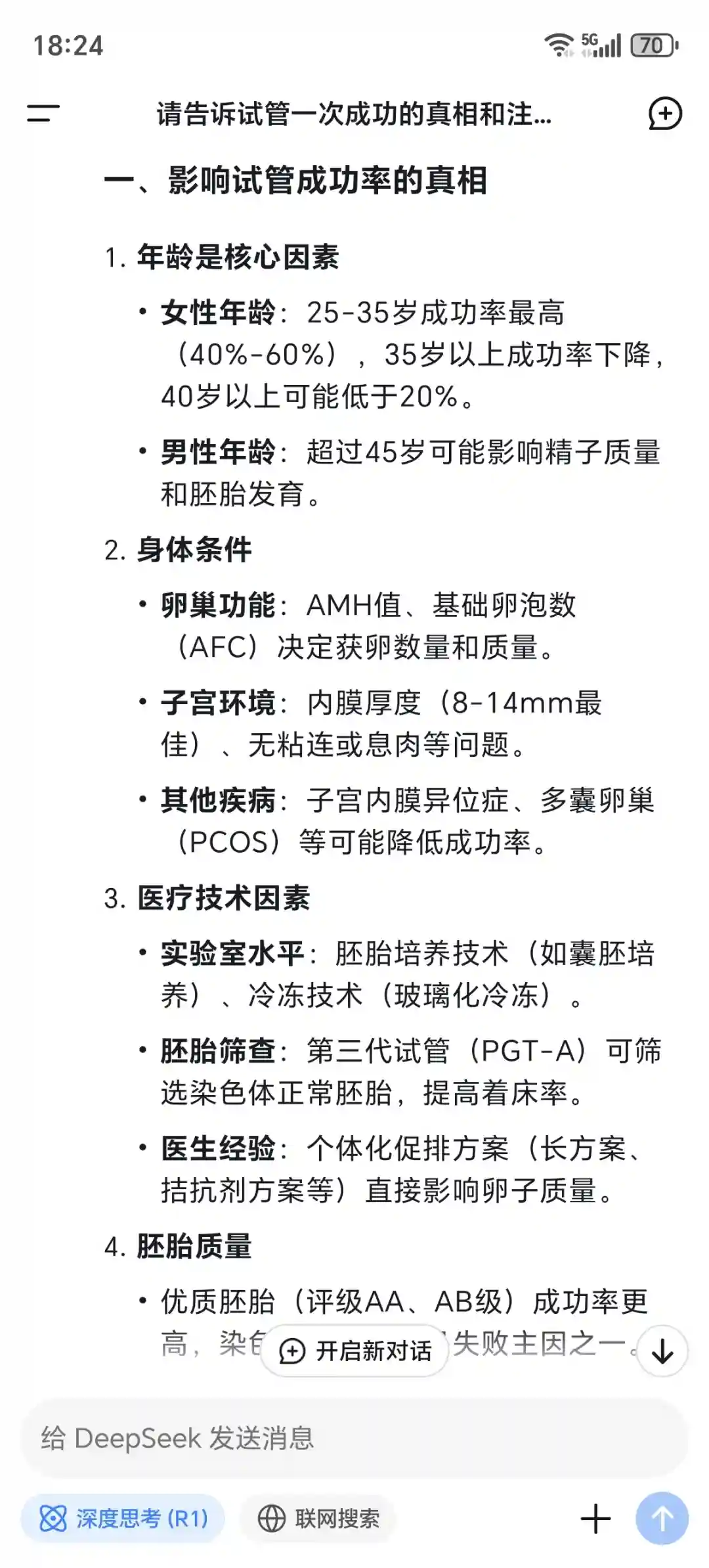 当我问deepseek:试管一次成功的真相时 基础卵泡少供卵