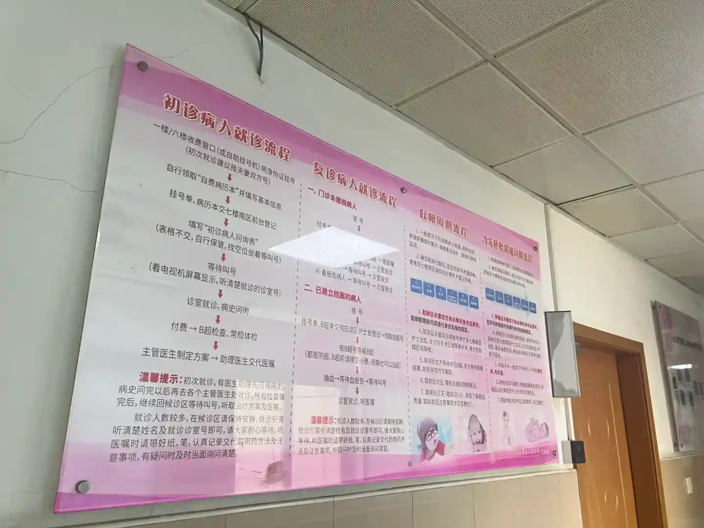 ✨一楼人工服务台挂号生殖科普通号(记得需要病历本)然后坐电梯上7楼有一整面的墙都是医生的介绍,看好了之后跟服务台说想选哪位医生之后就可以去找医生问诊了。