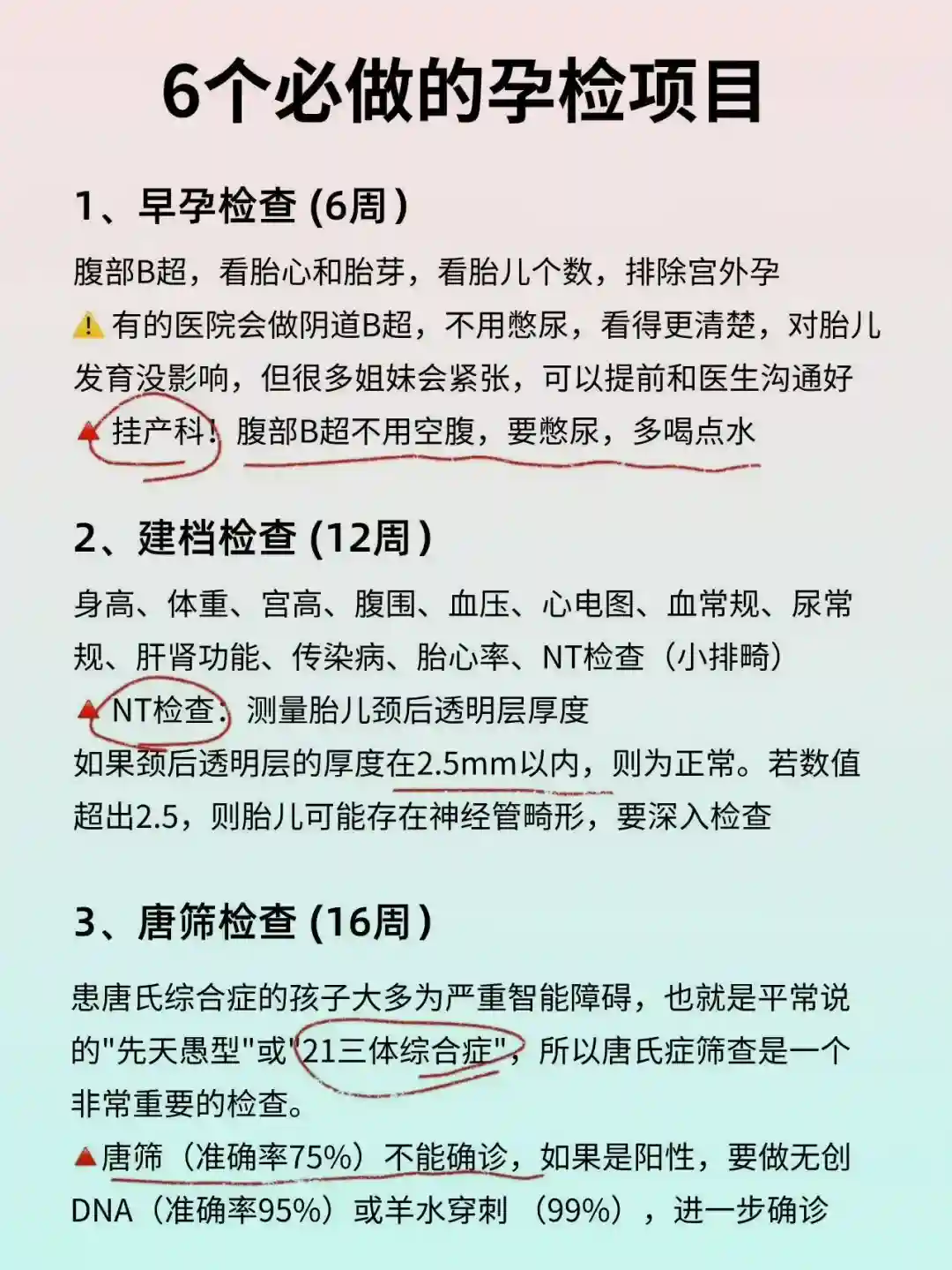 1⃣常规检查(6-8周)