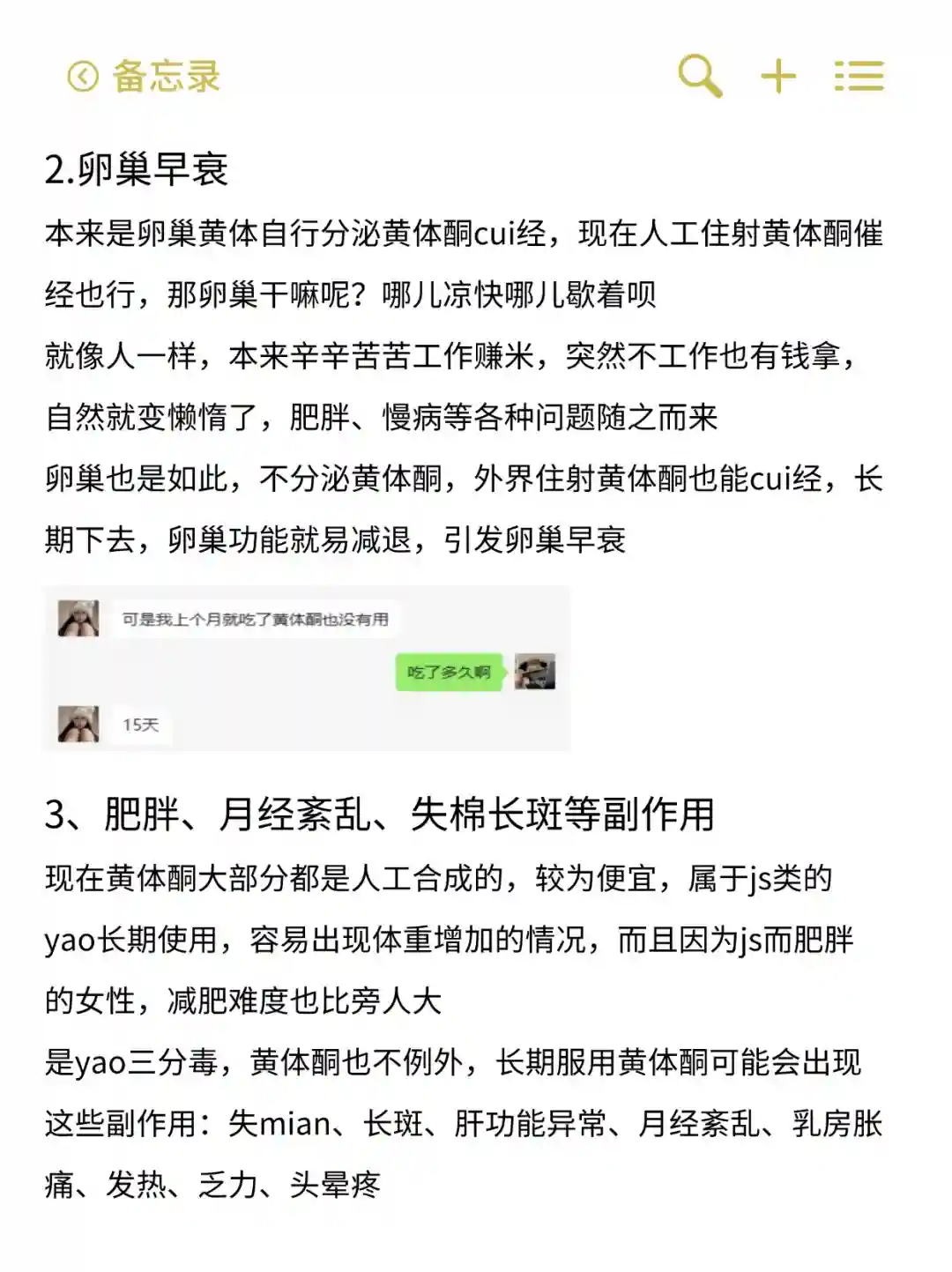 ⚠️黄体酮cui经3个副作用1.吃就来,不吃就不来