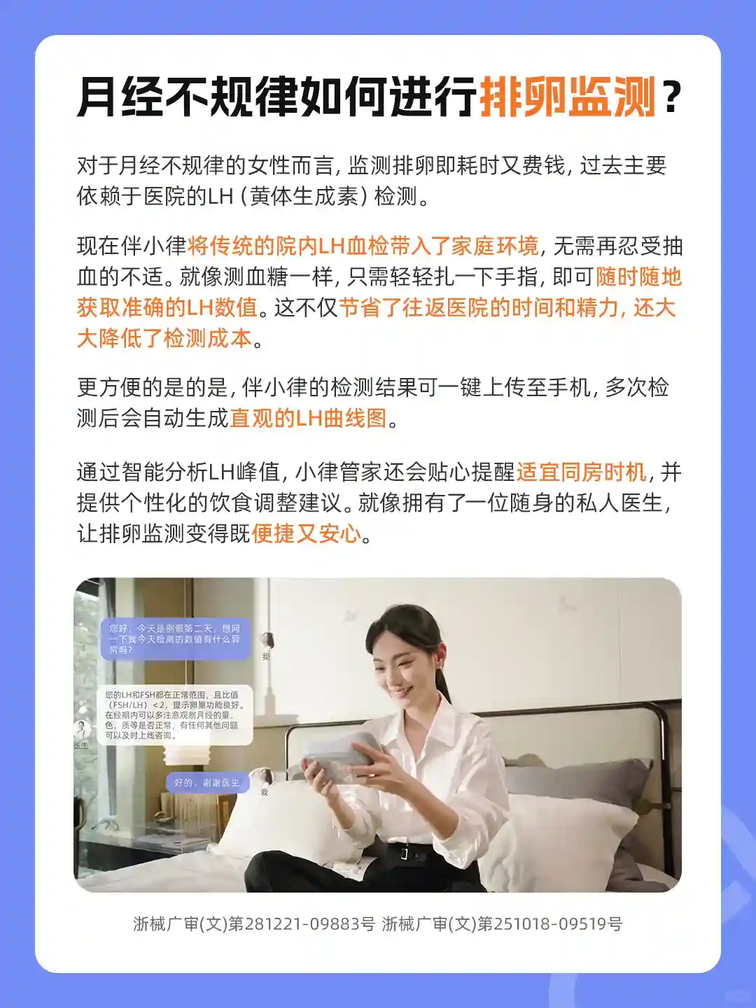 伴小律指尖血检>尿液定量检测>排卵试纸>计算排卵日