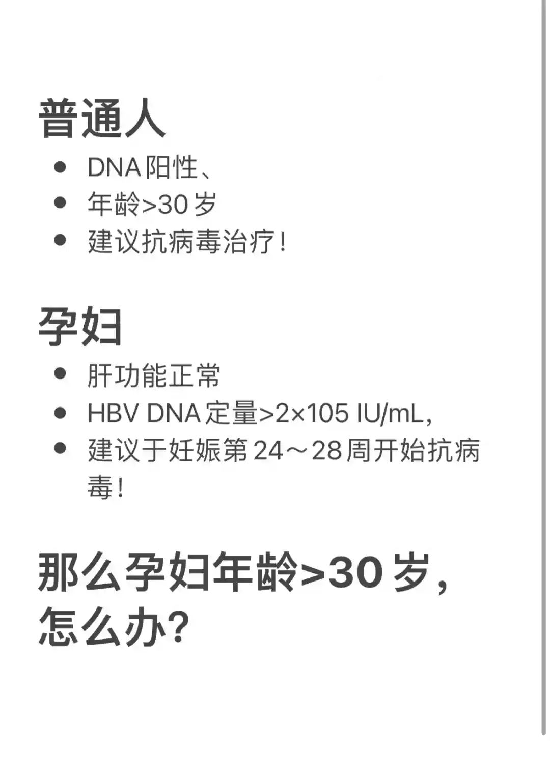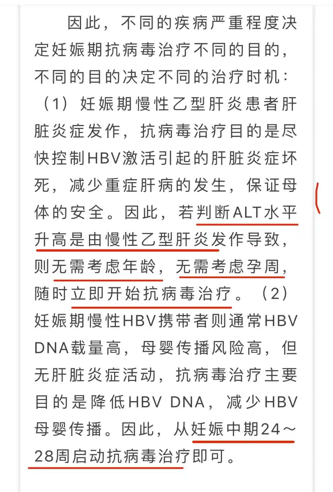 1⃣️ 孕期出现肝功能异常,判断ALT水平升高是由慢性乙型肝炎发作导致,则无需考虑年龄,无需考虑孕周,随时立即开始抗病毒治疗。