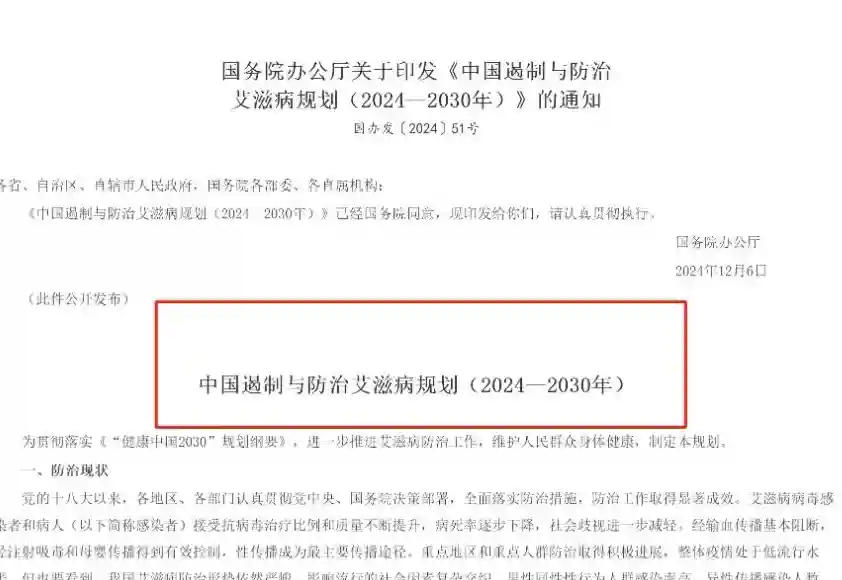 圈重点了!中国发布艾滋病防治重大规划